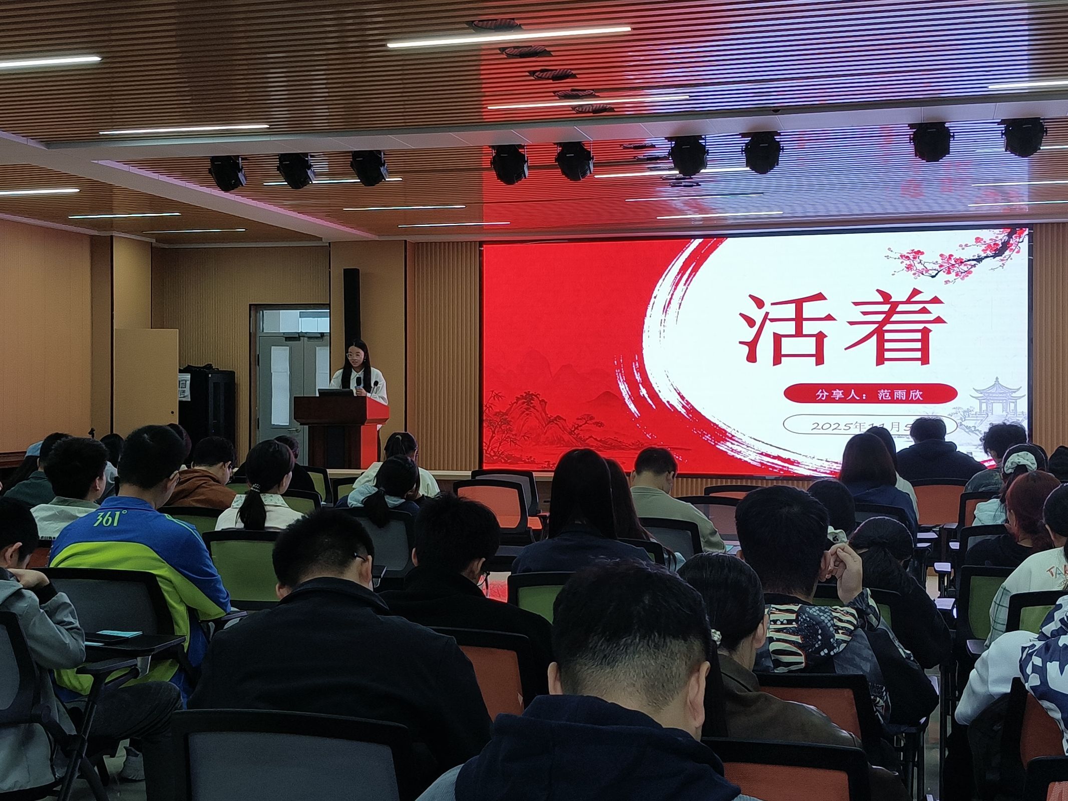 阅读分享环节,六位同学依次登台。黄梓涵结合《习近平的七年知青岁月》畅谈“自找苦吃”的青春担当;范雨欣以《活着》为镜,反思生命的韧度与温度;罗伊霏、陈恩佳从不同角度解读《红楼梦》,品味“千红一哭”背后的人生真谛;王轩分享《平凡的世界》,呼吁“把平凡的日子过成诗”;金雯玲则把《黄帝内经》中的“正气存内,邪不可干”融入校园生活,示范如何以传统智慧抵御焦虑。六段分享,六份启迪,或激昂或深情,给予读者管理情绪保持身心健康的启示。