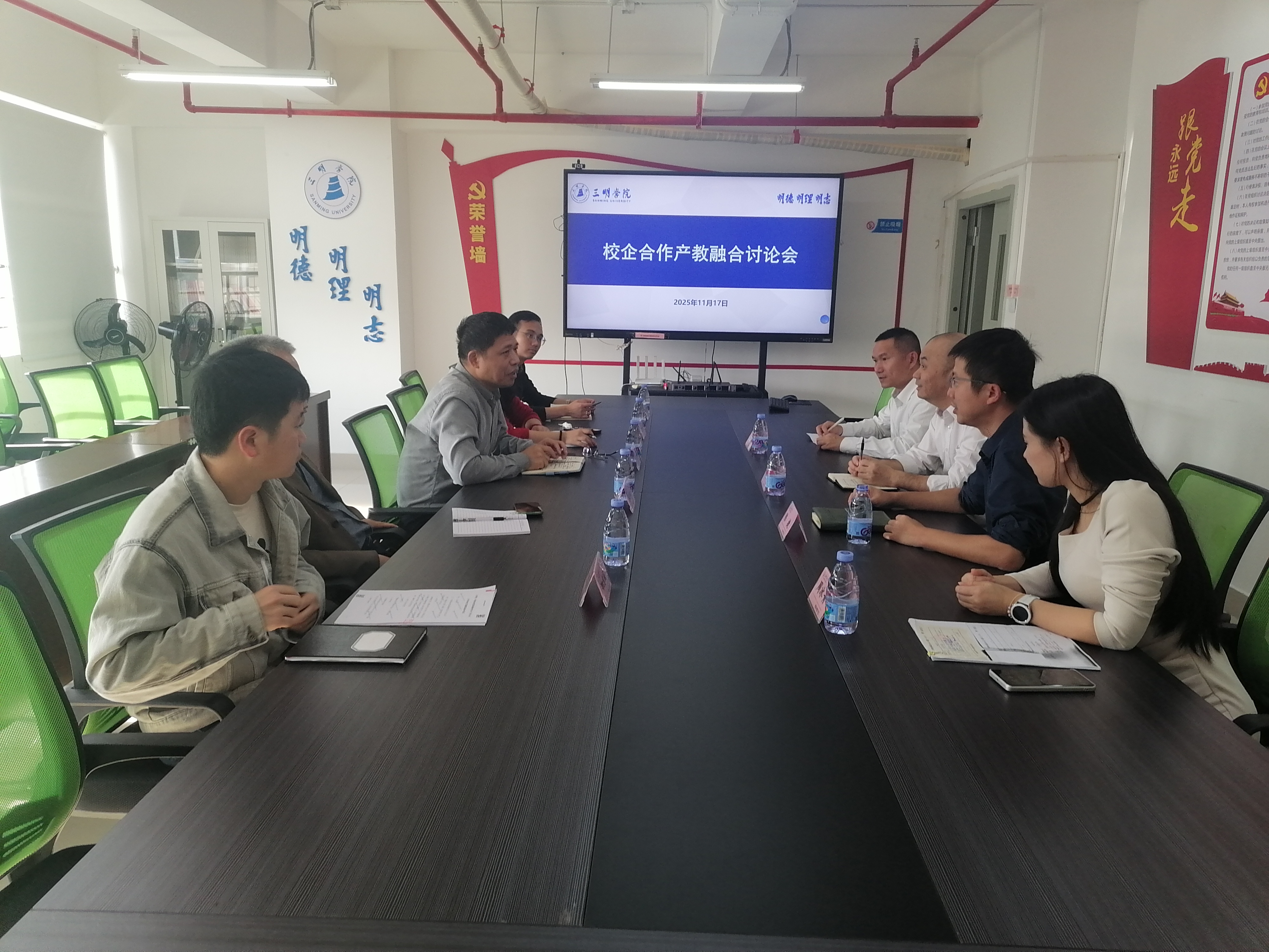 会上,学院负责人首先介绍了学科建设布局、应用型人才培养特色及科研成果转化进展,并着重强调了产教融合对提升教学实效与科研转化能力的重要意义。罗星光副总结合企业技术需求与行业发展趋势,提出在课程内容更新、实践基地建设、学生实习就业等方面的合作设想,并以5G应用、信息技术创新等领域为切入点,着重探讨了相关内容的科研合作。双方还就教学资源共享、科研团队共建、产学研协同创新等方面达成初步共识,明确将进一步细化合作方案,推动教学与产业需求精准对接,实现人才培养、科研创新与企业发展的互利共赢。