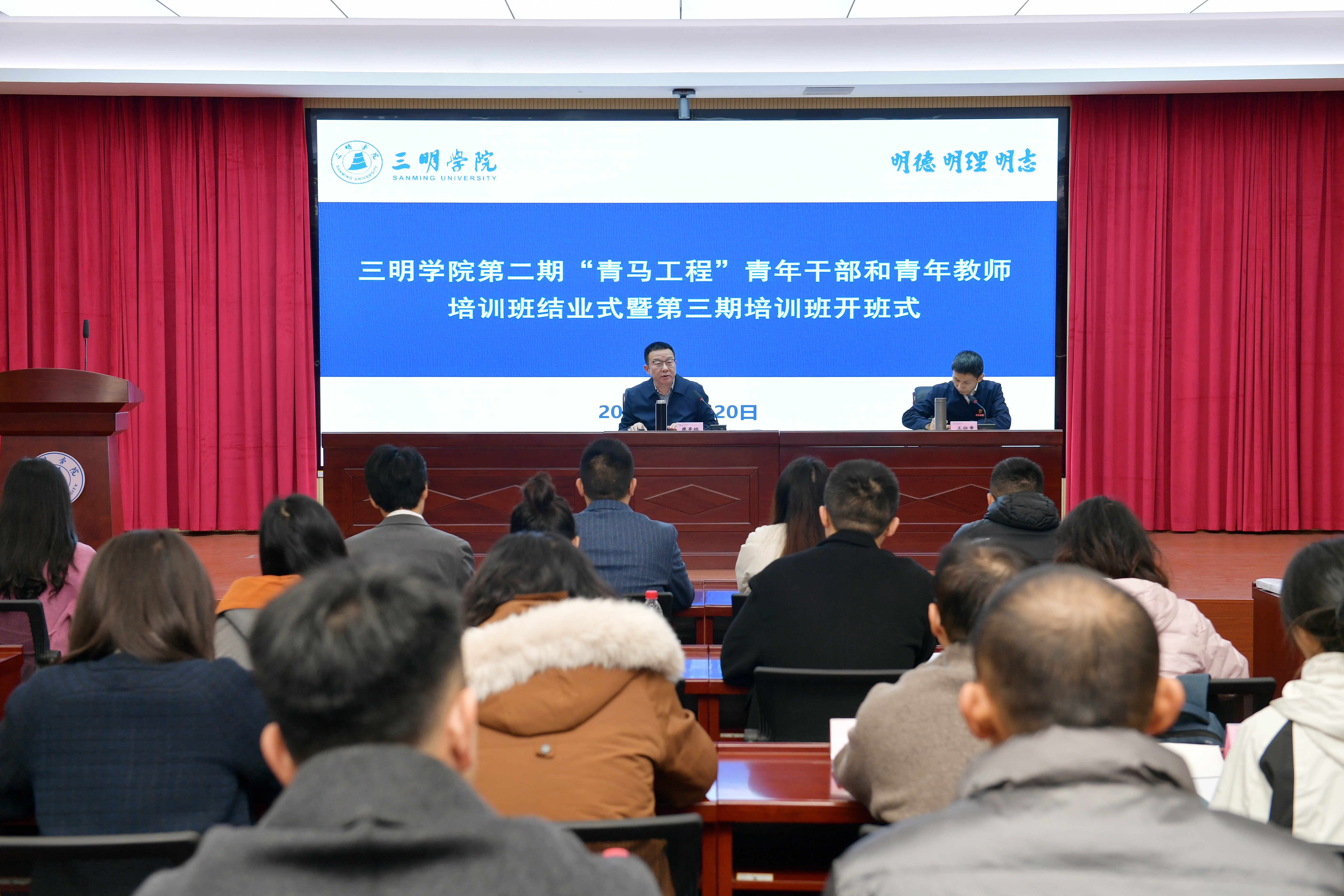 11月20日,三明学院第二期“青马工程”青年干部和青年教师培训班结业式暨第三期培训班开班式在第三会议室举行,校党委副书记、党校校长廖景榕出席仪式并讲话。