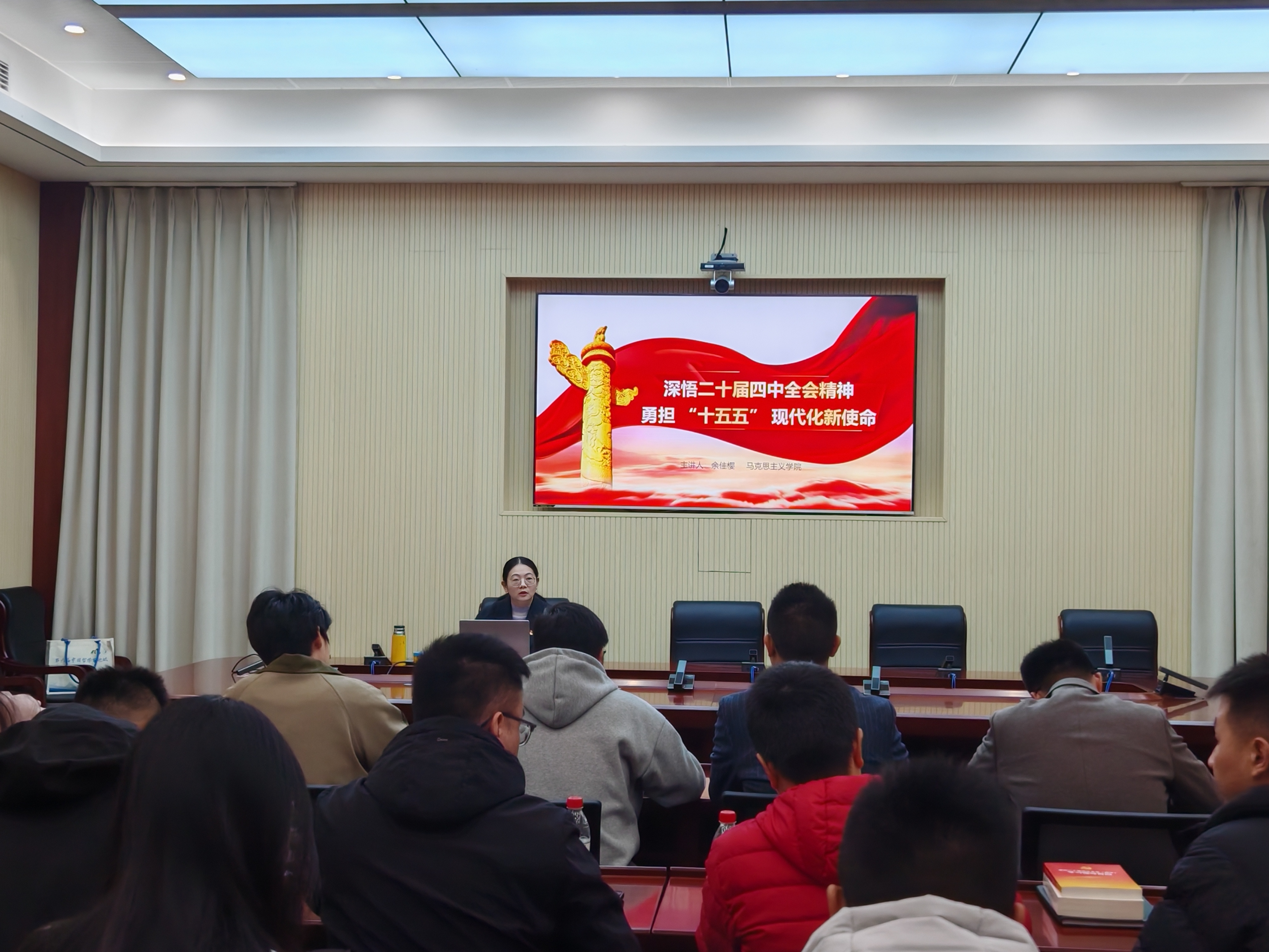 开班式后,马克思主义学院余佳樱老师为培训班学员作了题为《深悟党的二十届四中全会精神勇担“十五五”现代化新使命》的首场专题辅导。