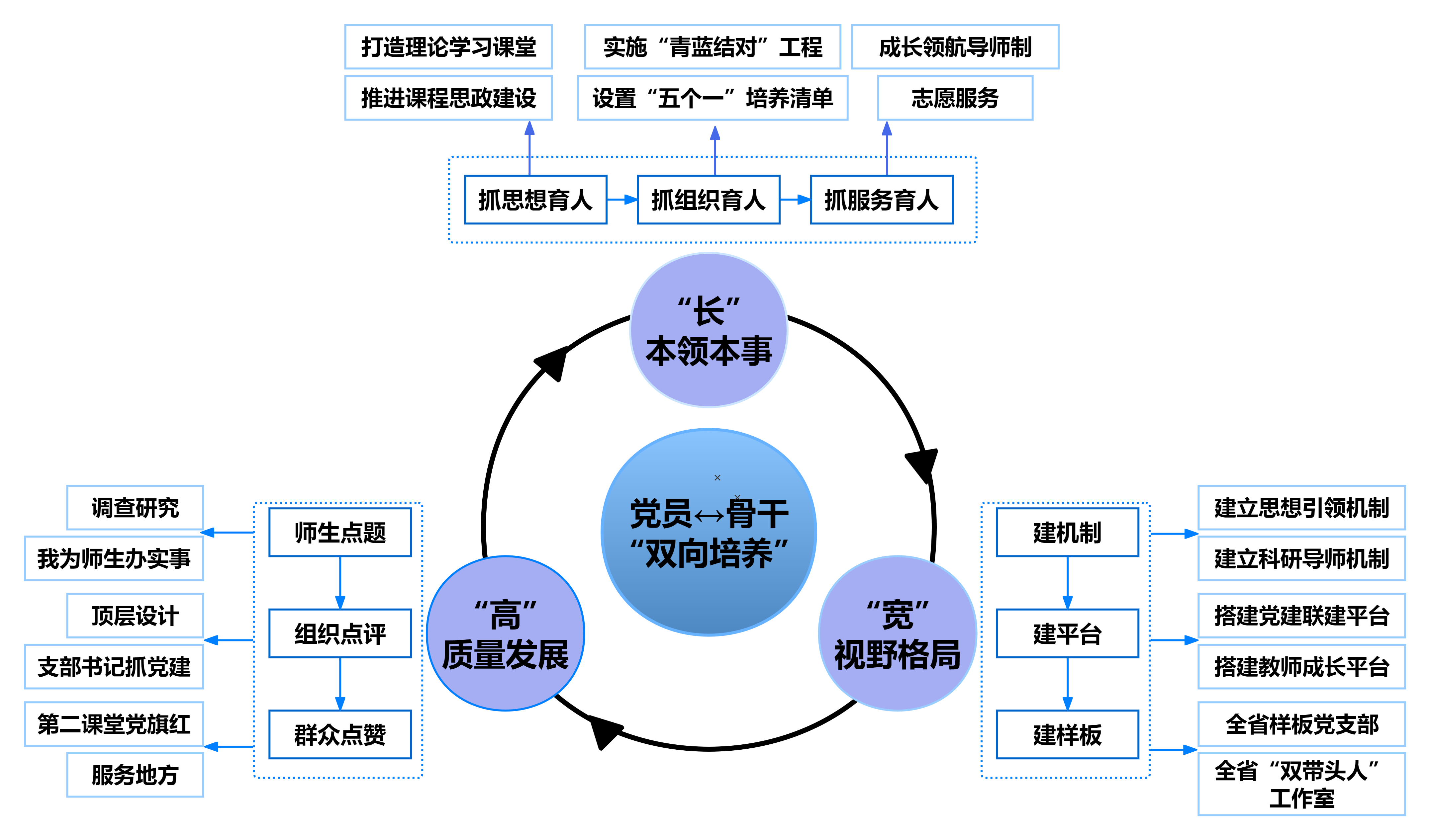 三是在师生群众认可的党员骨干中凸显“高”质量
