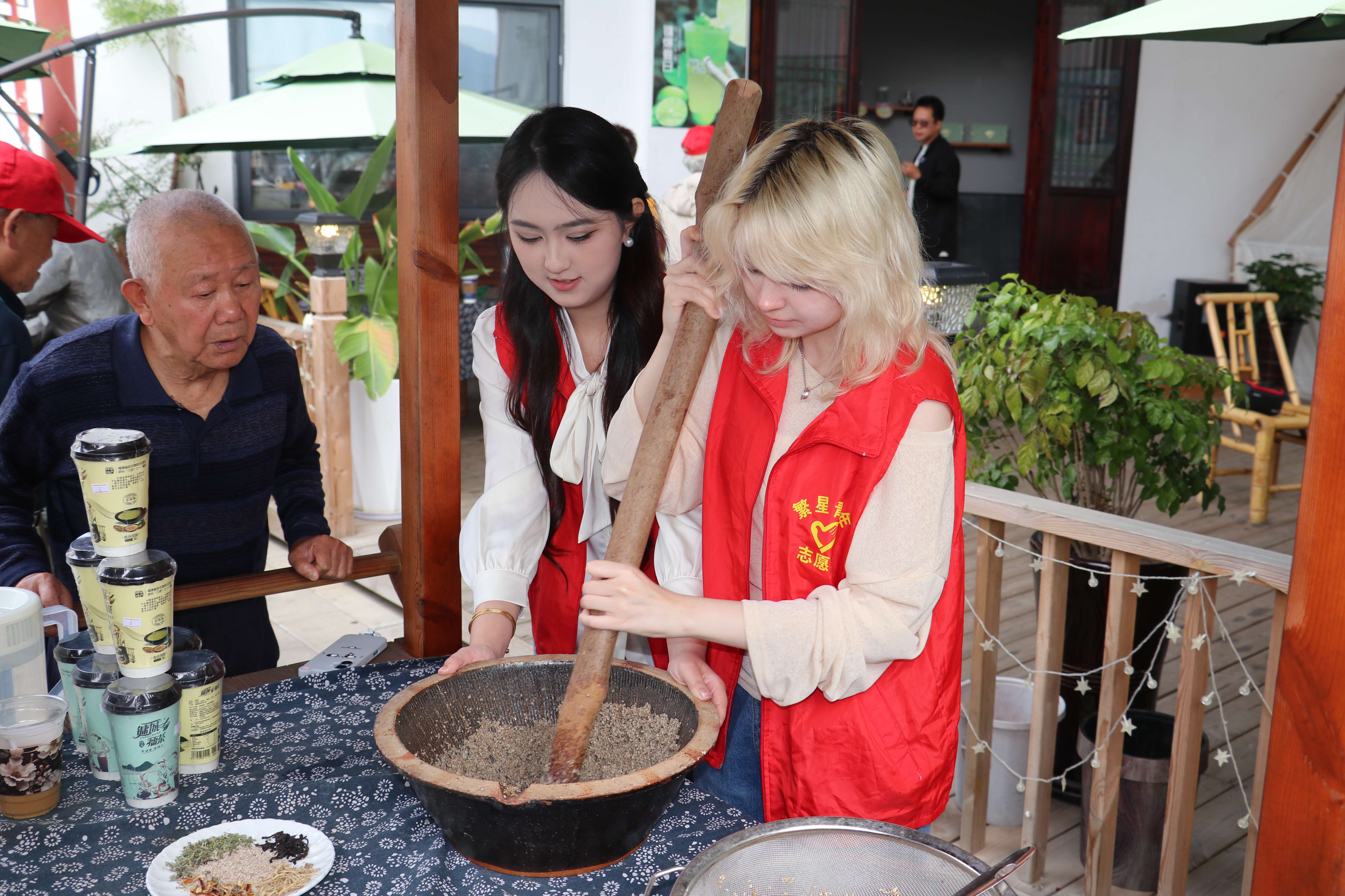 将乐县黄潭镇的工坊里,省级非遗传承人肖六金正向“镛城拾遗”实践队的队员们展示红糖制作的独门技艺。古法熬糖的香气萦绕在百年工坊内,队员们认真记录着每个环节。“镛城擂茶吧”中,学生们亲手体验擂茶制作,感受这项技艺作为情感纽带的文化内涵。“我们正在探索将红糖改良为糖果包装,将擂茶转化为即饮饮品,”队长展示着团队的设计方案,“让古老技艺以更轻盈的姿态走进现代生活。”