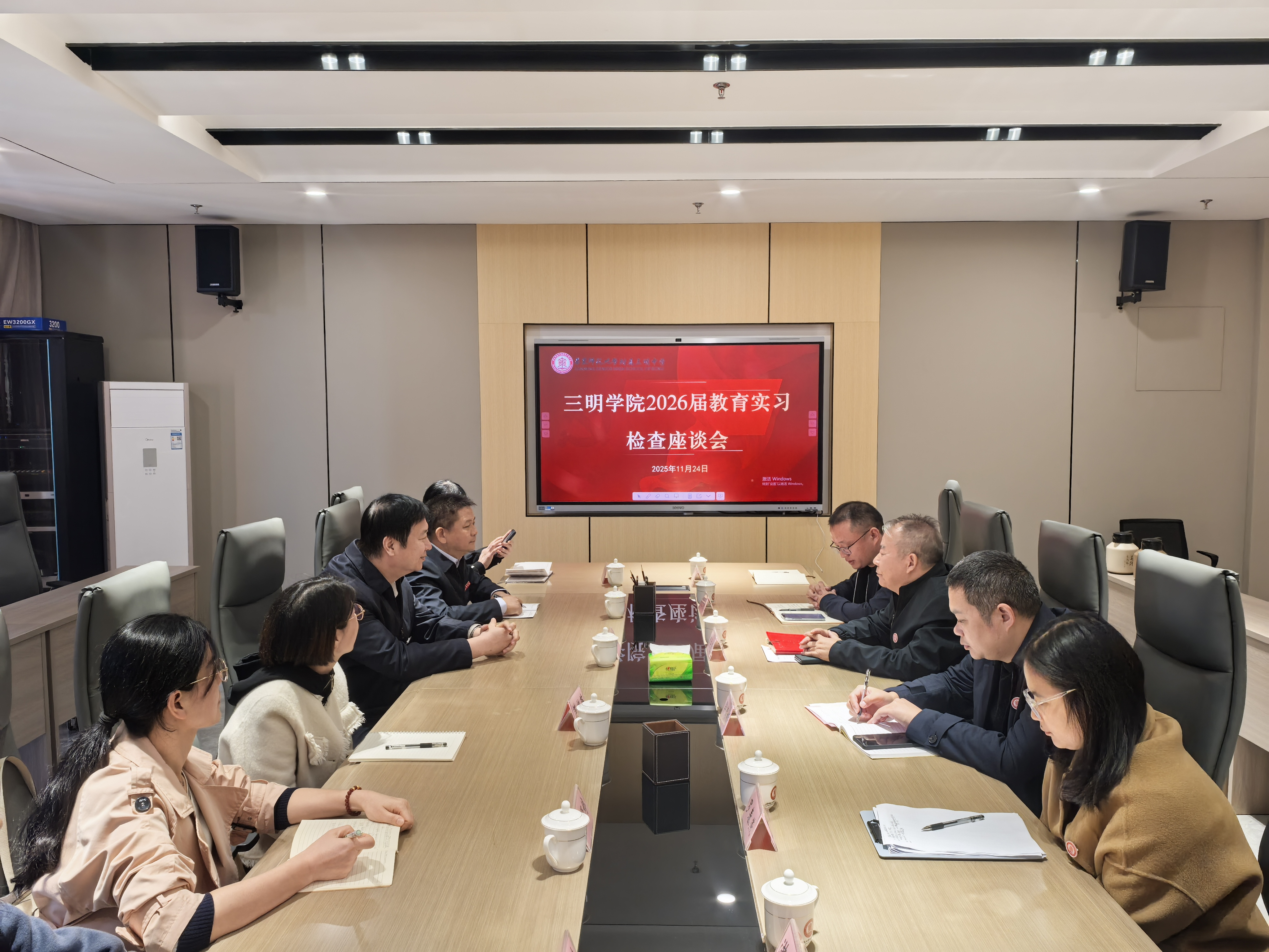 11月24日,校党委委员、副校长吴龙率领教务处、文化传播学院负责人,赴华东师大附属三明中学开展2026届师范生教育实习工作专项调研。