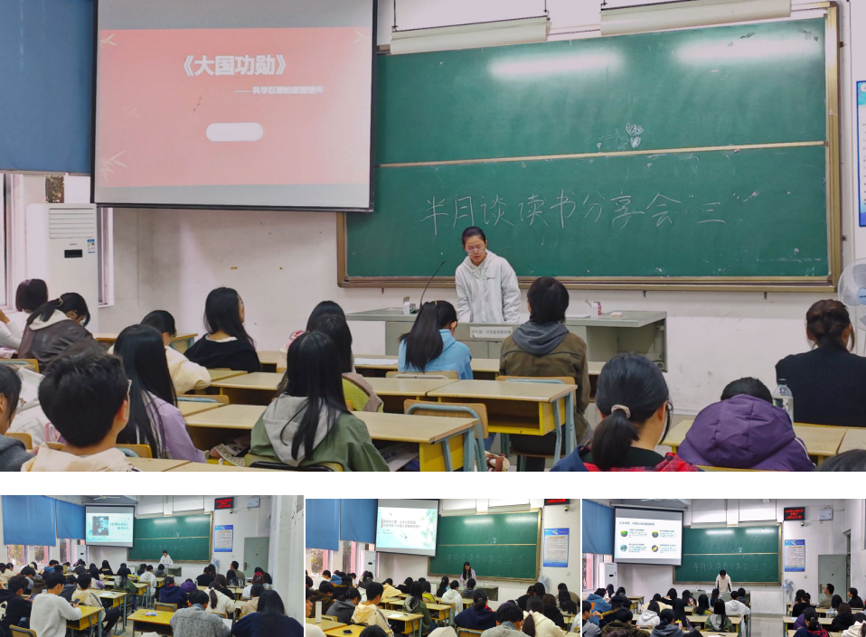 在读书分享环节,五位同学围绕主题书籍展开精彩分享。25级机械设计制造及其自动化专业的伍思萍同学以《大国功勋》致敬科学巨擘的家国情怀;25级化学(师范)专业的阎宇晨同学通过《乡土中国》解码中国社会的深层结构;25级财务管理专业的黄睿滢同学以《中国人的精神》阐释“温良”力量如何贯穿乡土与家国;25级材料化学专业的李雅莹同学借《吾国与吾民》展现中国文化的独特魅力。分享内容既有理论深度,又贴近现实生活,展现了青年学子对文化传承与时代责任的深刻思考。