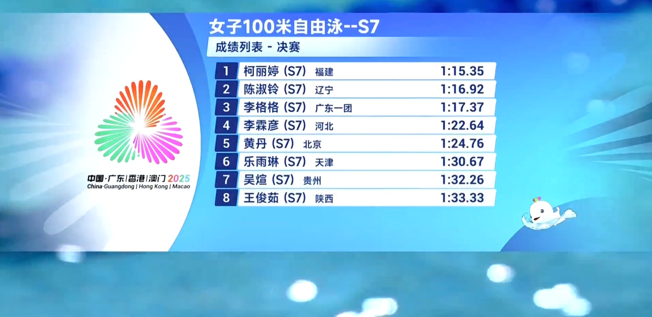 12月10日,在全国第十二届残疾人运动会暨第九届特殊奥林匹克运动会女子100米自由泳S7级决赛中,三明学院体育与康养学院教师柯丽婷勇夺金牌。这是继前一日(12月9日)在女子200米个人混合泳SM7级、400米自由泳S7级赛事中连获两枚银牌后,柯丽婷老师在本届赛事中的又一高光时刻。