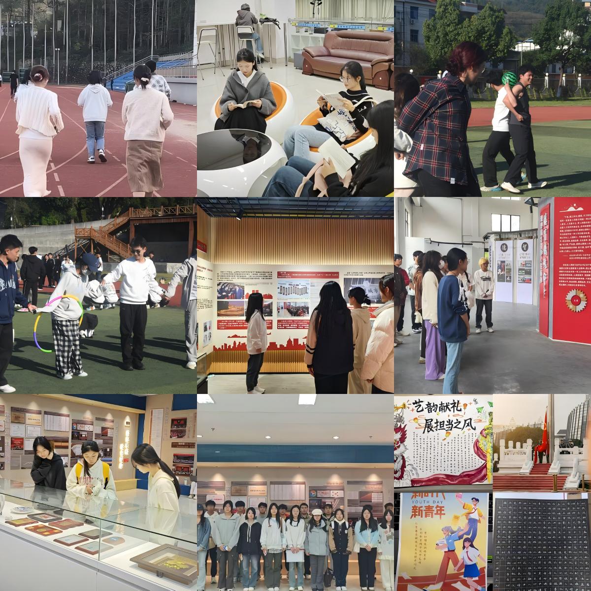 以“奋进新征程,青春勇担当”为主题,打造形式多样的线下实践平台。组织学员走进校史馆、民族团结示范馆、学生发展成果展示馆,通过“寻根校史”加深对校情的认知,厚植“校荣我荣”的价值认同;开展“强健身心”行动,鼓励学员走出宿舍、走进操场,以体育锻炼、图书馆阅读等方式展现青年活力,锤炼担当“硬脊梁”;发起“艺韵献礼”创作活动,学员以书法、绘画、摄影、手抄报等形式解读全会精神、展现校园风采,累计收集艺术作品145件,让青春担当以生动的文化形式传递校园正能量。此外,全体学员参与素质拓展活动,在团队协作中凝聚向心力,为后续团工作开展奠定坚实基础。