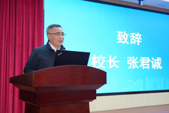 张君诚校长在论坛开幕致辞中代表学校向与会专家致以热烈欢迎,并向联合培养高校表示衷心感谢。他强调,2025年,学校迎来了首届自主培养的研究生,这不仅是学校教育发展历程中一次里程碑式的跨越,更是学校迈向高质量育人、建设一流应用(研究)型大学的全新起点。本次研究生论坛的举办,既是学校强化学风建设、提升研究生培养质量的重要举措,也为青年学子搭建的成长阶梯和展示平台。希望全体研究生以论坛为契机,敞开心扉、真诚交流,在思想碰撞中开拓学术视野,在深入探讨中凝聚创新共识,在互动交往中结下深厚情谊。