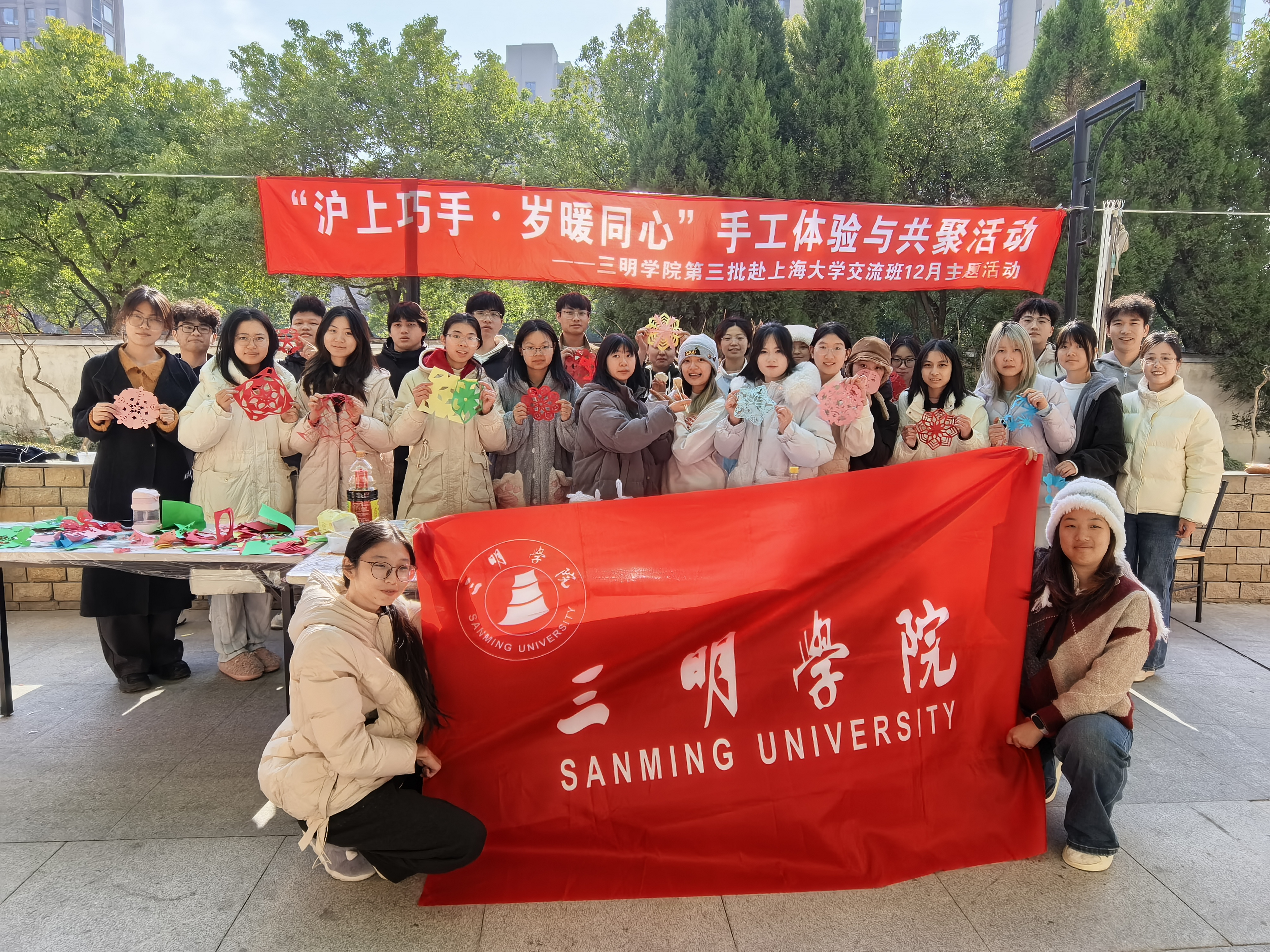 12月28日,三明学院第三批赴上海大学交流班在南区一号楼学生社区举办“沪上巧手岁暖同心”手工体验主题活动,通过包饺子、剪纸等劳动实践,让学生在动手协作中舒缓期末压力、增进情感交融、喜迎新年到来。
