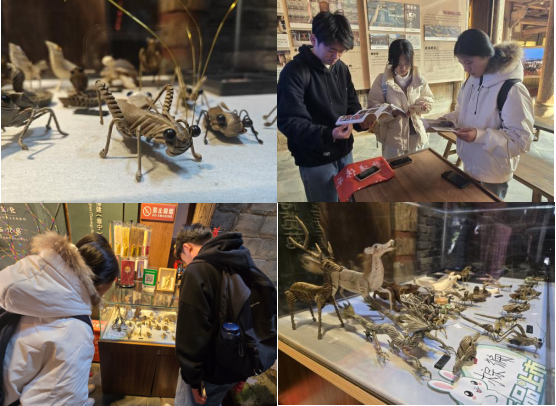 在福建(泰宁)乡村非物质文化遗产博览苑,造型生动、工艺精湛的棕编作品令实践队员流连忘返。实践队成员仔细观察传承人娴熟的编织技法,深入交流作品背后的创作理念与文化寓意,共同探讨如何将这门“指尖上的艺术”转化为易于国际受众理解和接受的视觉符号与叙事语言,为其跨文化传播寻找契合的表达方式。