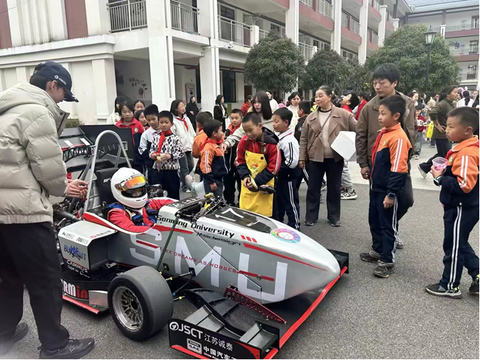 (高校学生党员引导小学生体验方程式赛车)
