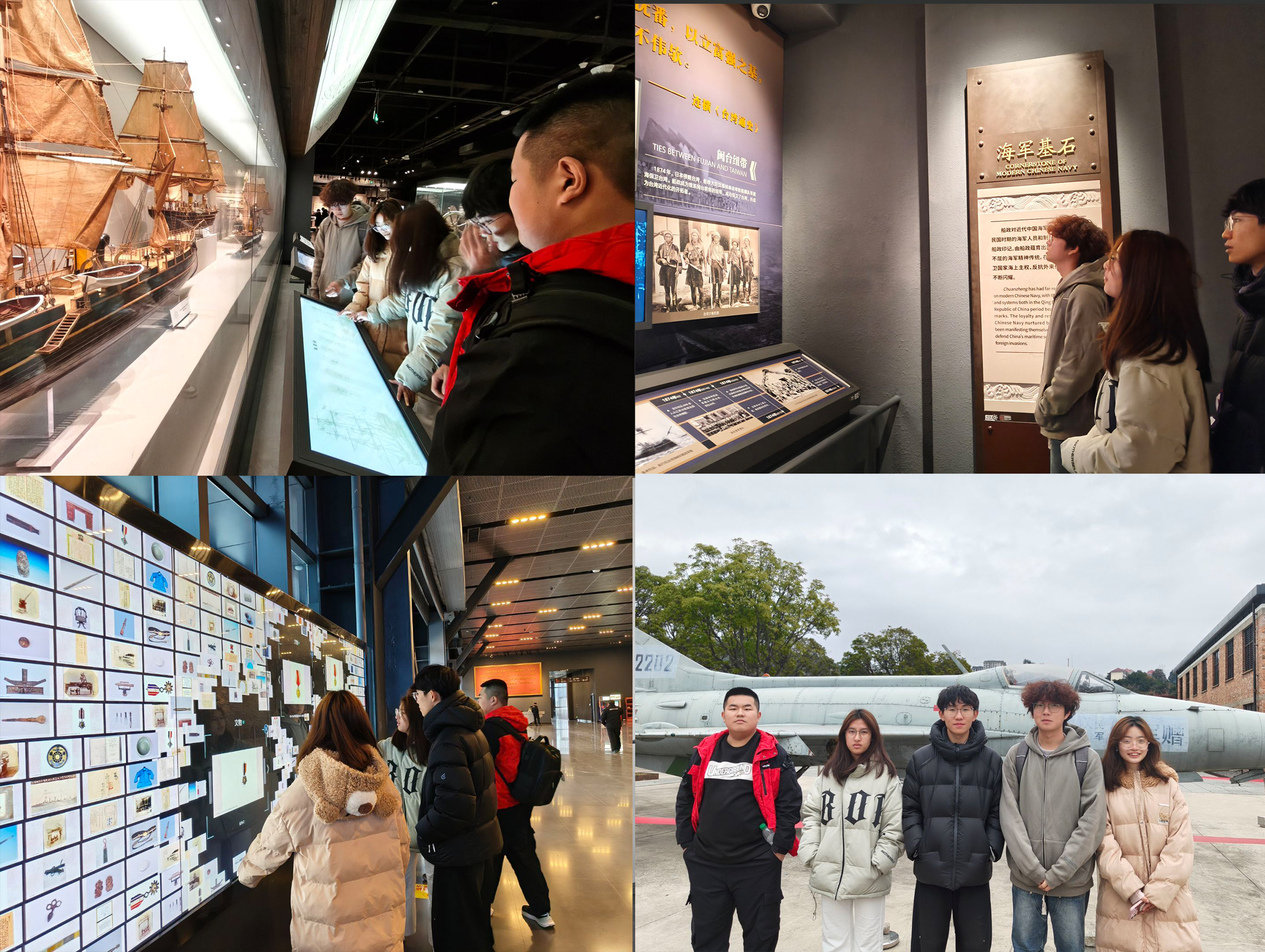 随后,实践队探寻了中国船政文化博物馆与福州海峡国际会展中心。队员们沿着展区一路参观,透过泛黄的图纸、锈迹斑斑的船锚、复原的船台等实物与场景,并结合在海峡国际会展中心所见的现代化船舶模型、智慧海洋技术展示,深刻感受到从近代船政“师夷长技以制夷”的救国探索,到当代福建海洋事业高质量发展的历史跨越。