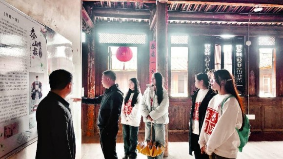 随后,实践团来到全国重点文物保护单位泰山楼——梅记茶行发祥地。队员们参观了“泰山楼”石匾、“大夫第”匾额等珍贵文物,“早年间,这里的茶商带着铁观音漂洋过海,让咱们的茶香飘到了世界各地,成为中外文化交流的纽带。”讲解员指着老照片,讲述起梅记茶行当年将铁观音远销海外的故事。实践团重点了解了泰山楼在文化旅游、非遗教育中的创新应用,感悟铁观音文化与侨乡文化的有机交融,为探索非遗“兴”起来汇聚实践经验、激发传承活力。