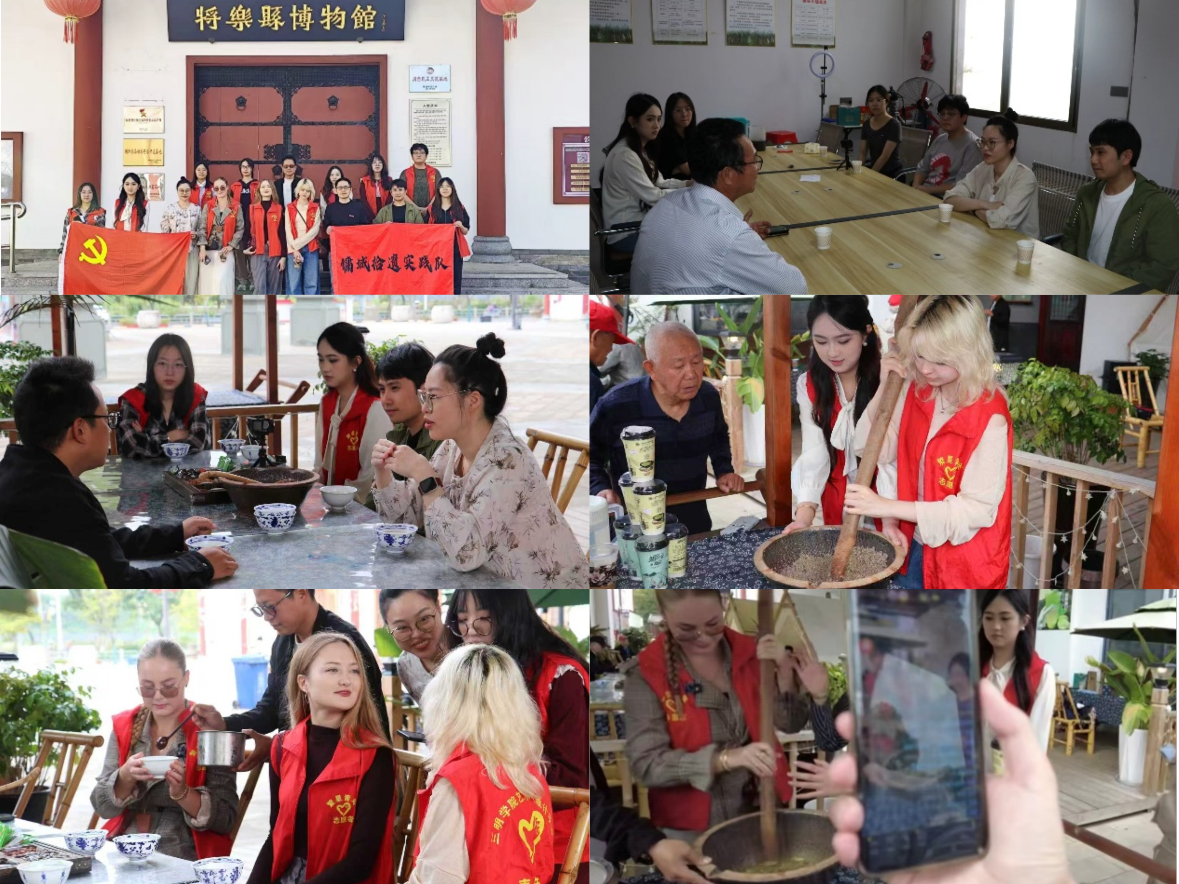 近日,艺术与设计学院“国际拾遗小队”赴将乐县开展非遗探访与乡村振兴社会实践活动。团队邀请俄罗斯留学生共同参与,组建中外青年非遗探访团,深入体验当地擂茶、古法红糖等非遗项目,并结合专业进行创作与设计,助力乡村文化传播与产业发展。
