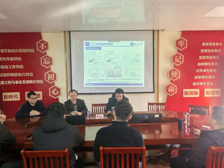陈宝魁老师首先作了题为《海底地震动特性及其应用进展研究》的精彩学术报告。报告中,陈老师系统梳理了海底地震动研究领域的前沿动态,深入阐释了其独特的工程特性、最新的分析理论与方法,并结合实际案例,详细介绍了相关研究成果在海洋工程、近海结构抗震等领域的应用进展。报告内容丰富、深入浅出,引发了在场教师的浓厚兴趣与热烈讨论。