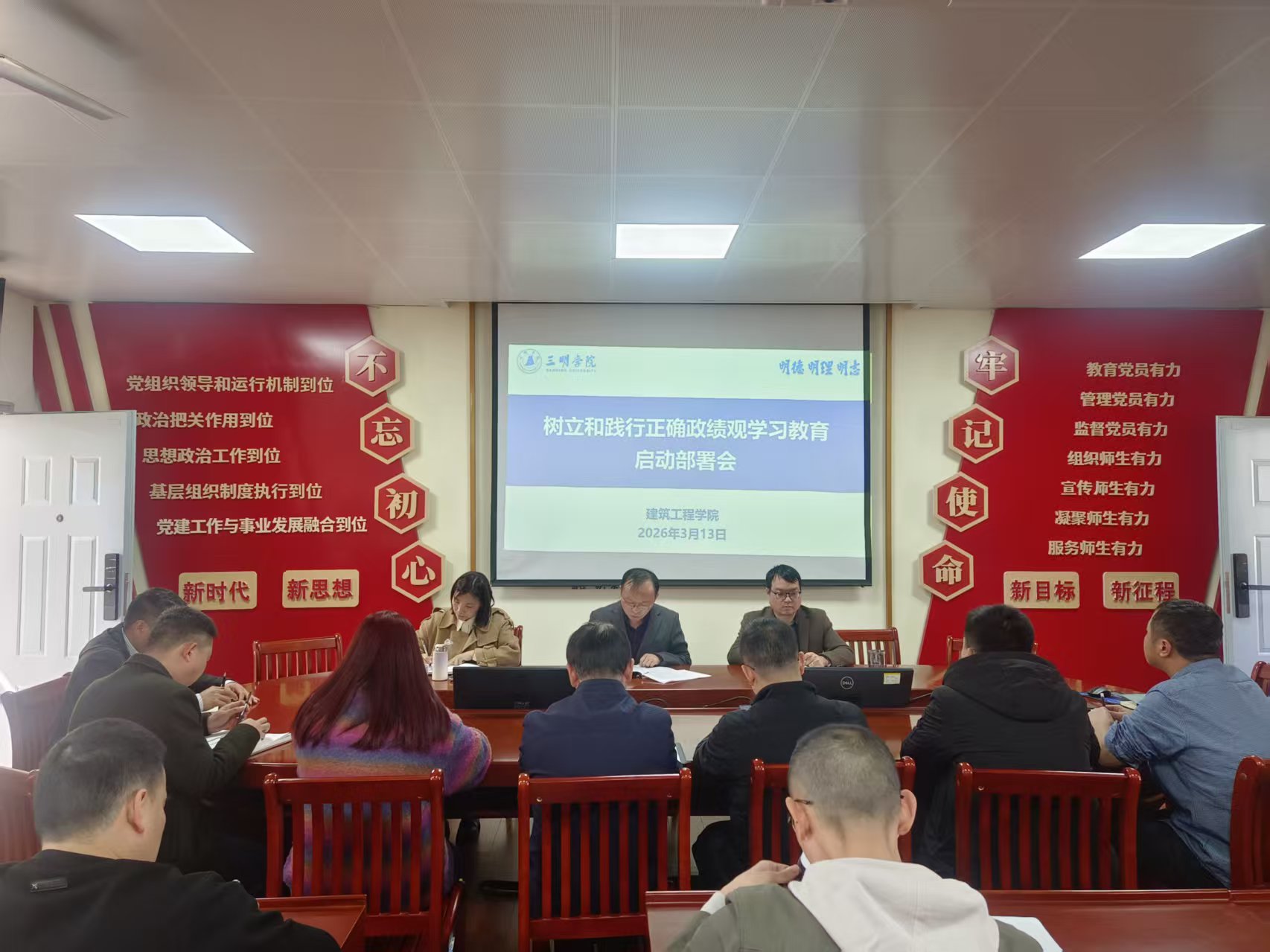 3月13日下午,建筑工程学院党委召开党委(扩大)会议,传达学习中共中央、省委党的建设工作领导小组会议精神及校党委工作部署,重点研学习近平总书记关于树立和践行正确政绩观的重要讲话和重要指示精神,研究部署开展树立和践行正确政绩观学习教育工作。院领导班子成员、全体中层领导干部、师生党支部书记参加会议。