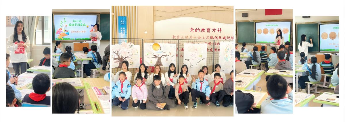 活动中,志愿者们充分发挥专业所长,化身小老师开展“生命之树”心理成长课。从运用语言表达与情绪引导能力,带领学生冥想回顾六年成长历程,到发挥美育创意与文本功底,陪伴大家绘制专属“成长年轮”,记录温暖瞬间与成长收获;从凭借团队协作能力协助小组共创集体“生命之树”,粘贴年轮、书写祝福,到以共情沟通本领陪伴学子围坐分享成长故事、互赠暖心寄语,志愿者们全程耐心引导、贴心陪伴,营造出安全、温暖的活动氛围,有效缓解了孩子们的毕业焦虑,让大家在艺术表达与集体互动中感受同伴联结,积蓄前行力量。与此同时,志愿者们也在躬身实践中,将课堂所学转化为服务实效,锤炼了沟通表达、创意实践、临场应变等核心专业能力,实现了志愿奉献与专业成长的双向提升。