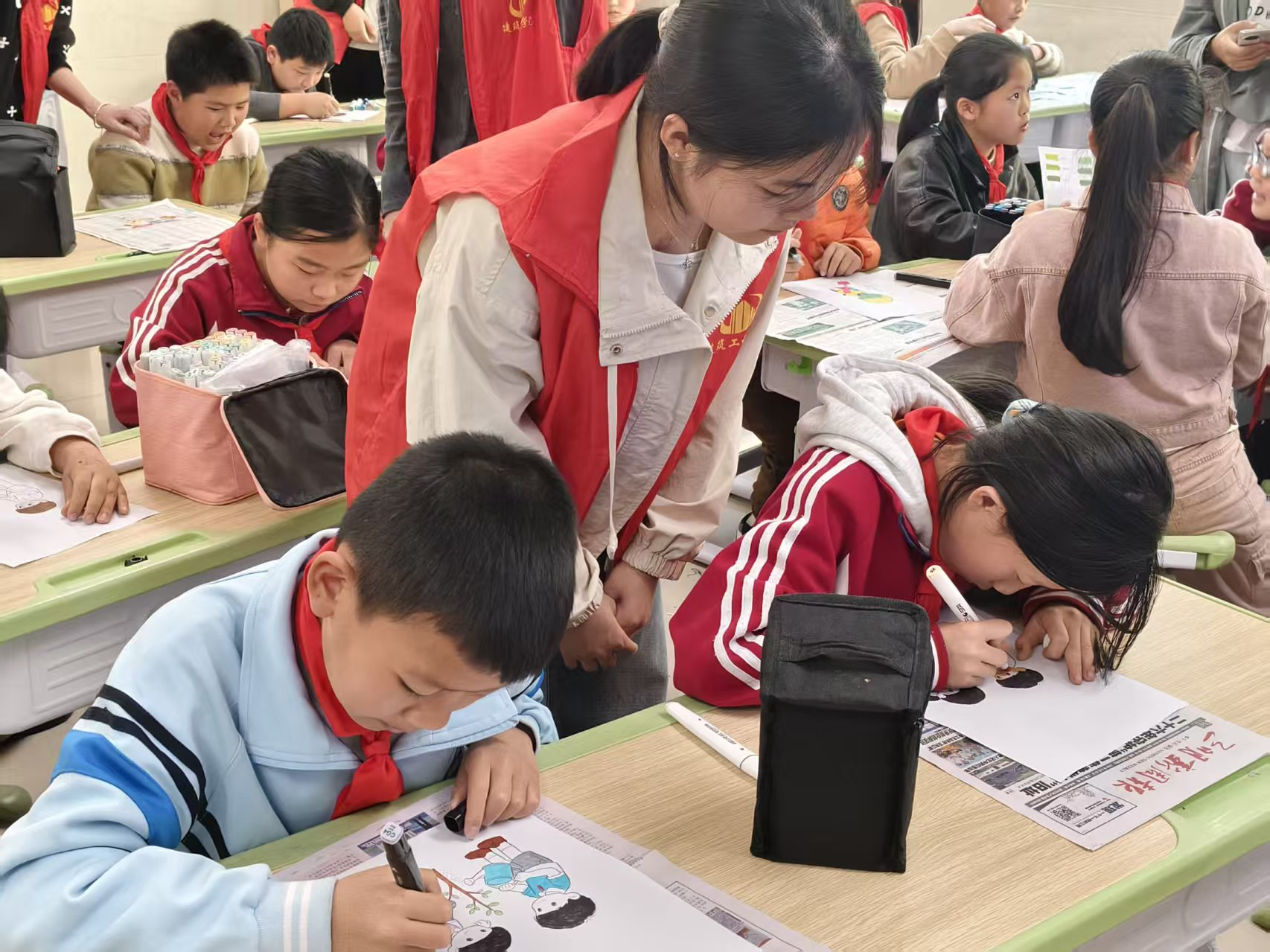活动以宣讲、创作、展示为核心环节,贴合小学生认知特点有序开展。志愿者们以趣味PPT宣讲的形式,用通俗的语言普及爱绿护绿知识、校园植物养护方法,互动问答环节充分调动了孩子们的参与热情。在携手创作护绿宣传牌环节,党、团员志愿者分组指导孩子们为宣传牌上色,孩子们亲手盖上手印,将护绿承诺融入创作之中。活动最后,学生代表分享护绿心愿,全体人员共同宣读护绿承诺,在合影留念中定格美好瞬间,活动结束后志愿者与孩子们一同清理场地,践行环保理念。