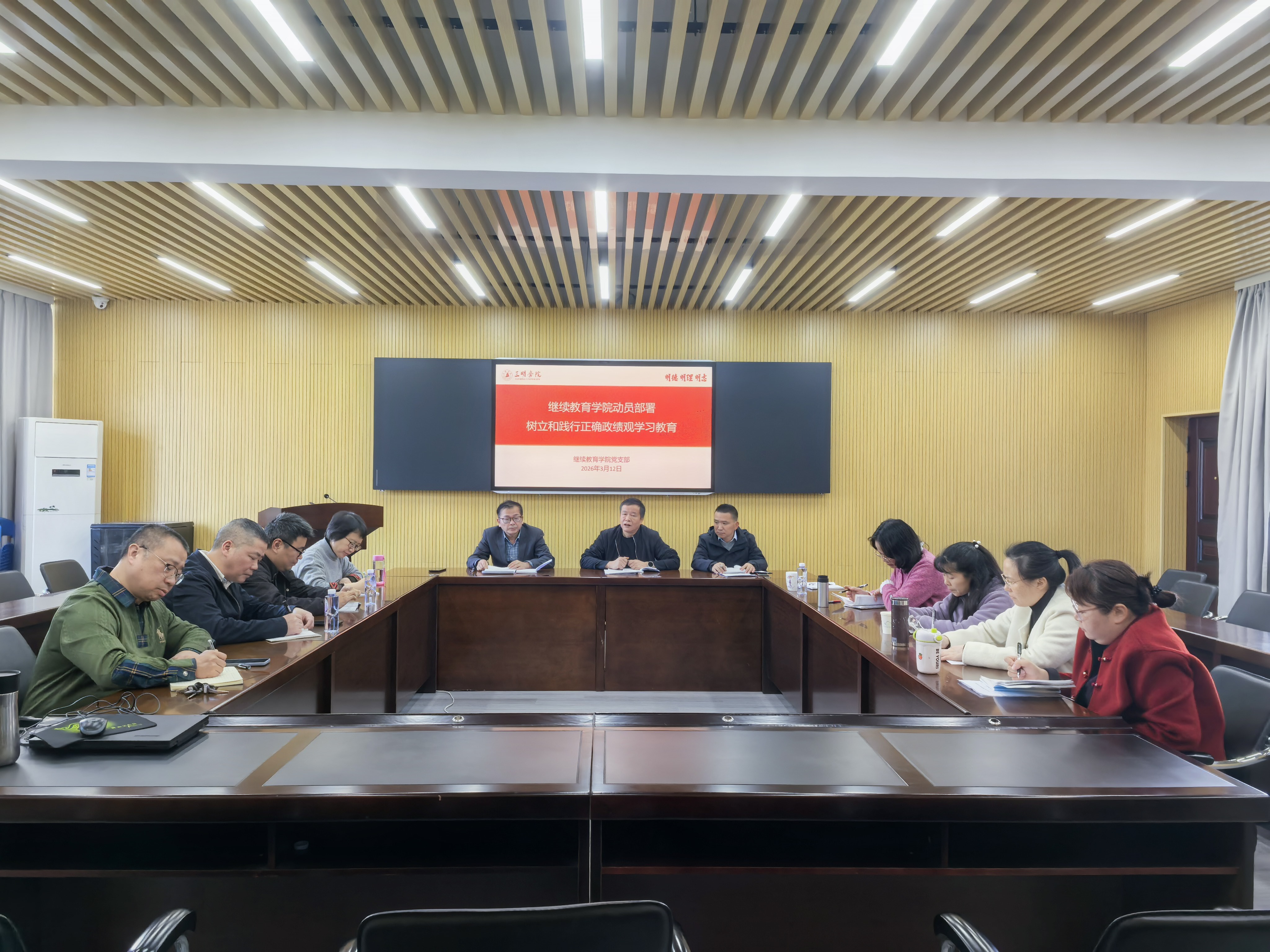 3月12日,继续教育学院召开会议,动员部署树立和践行正确政绩观学习教育工作。