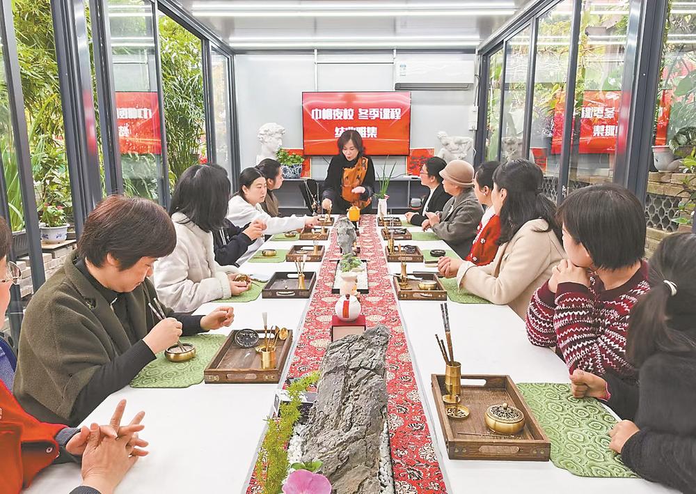 在黄慎伊秉绶书画院,群众参加巾帼夜校活动。