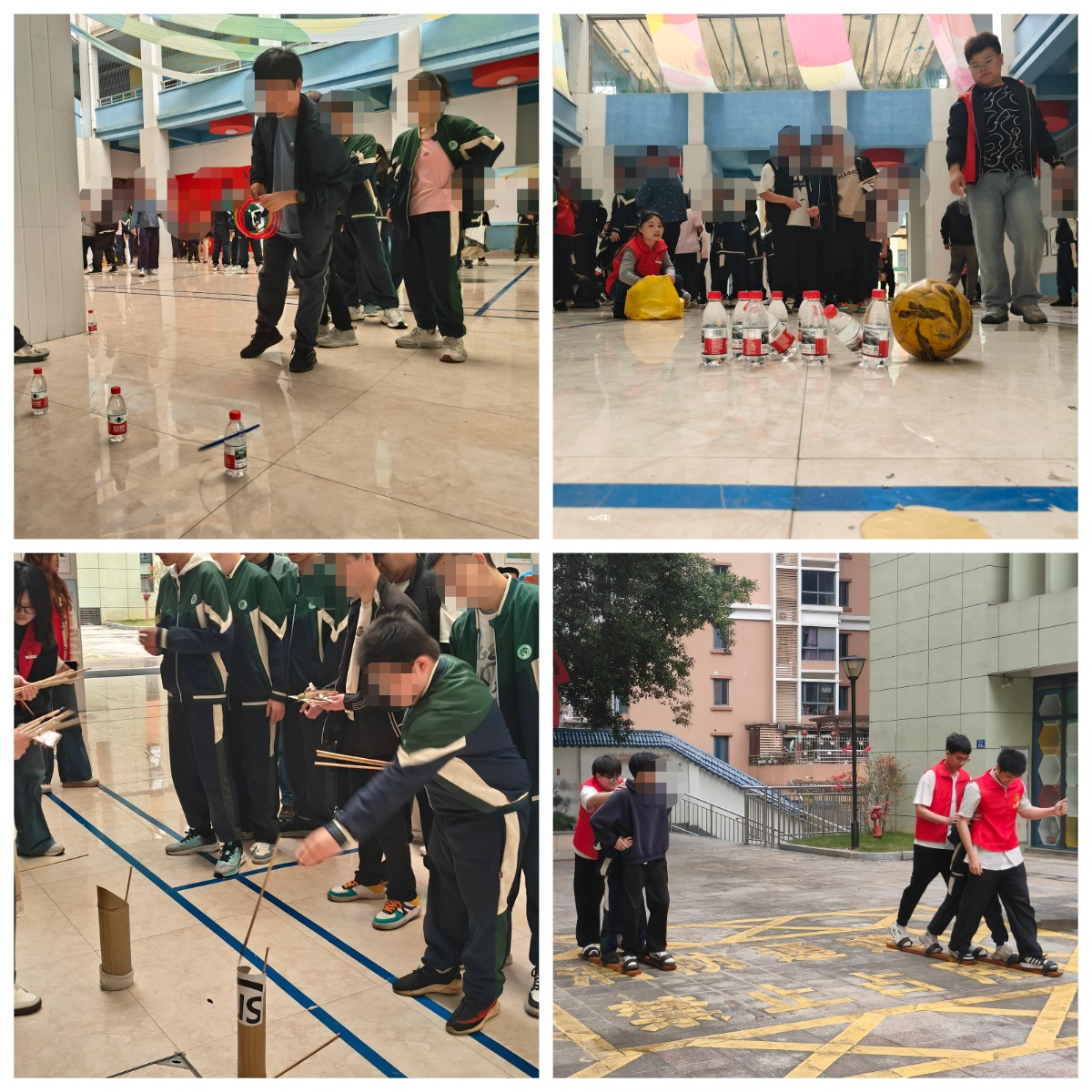 活动最后,全体人员移步室外,参与趣味游园活动。现场设置了多个兼具趣味与深意的小游戏。包括“雷”厉风行投壶套圈游戏中,道具上贴有“乐于助人”等正能量标签,寓意传承雷锋精神。“六条腿”健步如飞项目中,志愿者与特校同学脚套同一双板鞋,在步调一致中体会团结协作的力量。还有“民族团结”拼图赛、投保龄球等活动同样吸引了众多特校同学踊跃参与,现场欢声笑语不断。