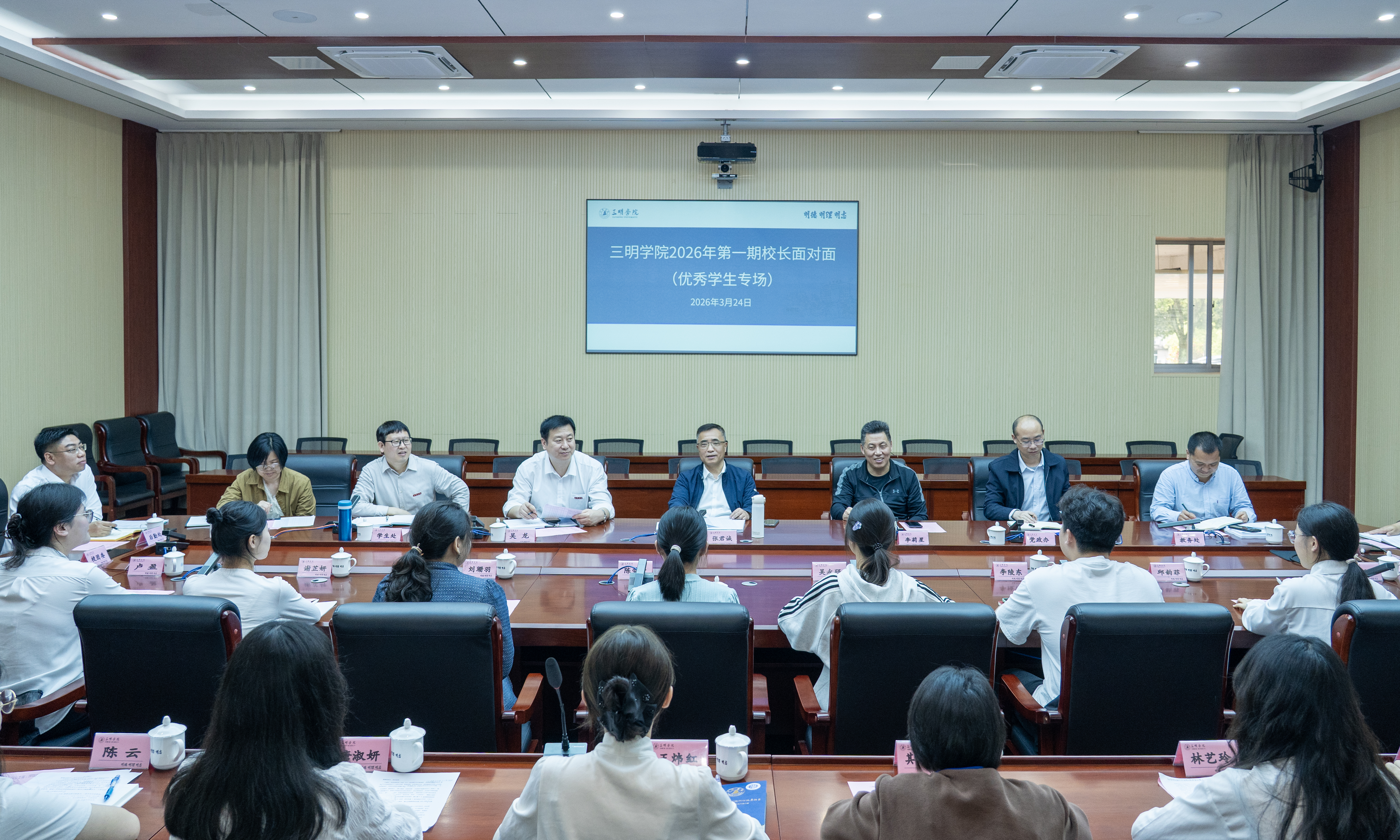 3月24日下午,三明学院2026年第一期校长面对面活动在会议中心第二会议室举行。张君诚校长、李莉星副书记、吴龙副校长以及相关职能部门负责人与20名学生代表共聚一堂、共话成长,面对面倾听学子心声,心贴心回应发展关切。