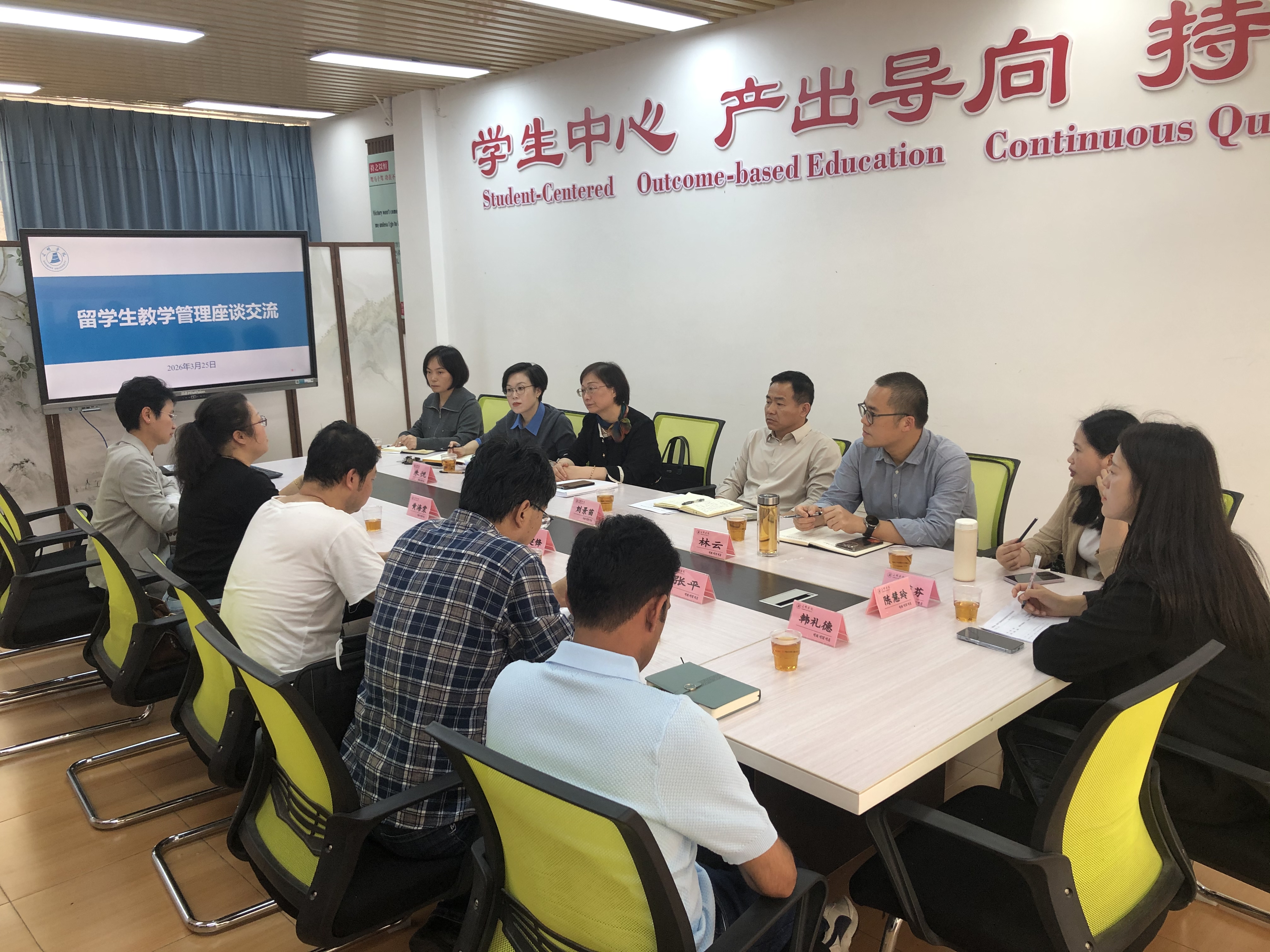 为进一步提升来华留学生管理效能与教学质量,夯实学校国际化办学根基,近日,海外学院(外国语学院)联合对外合作与交流处在鸿文楼(二)C107会议室开展来华留学生教学管理工作协调会,海外学院(外国语学院)、对外合作与交流处、经济与管理学院、艺术与设计学院等单位相关领导、教务管理人员和任课教师共同参加了会议。