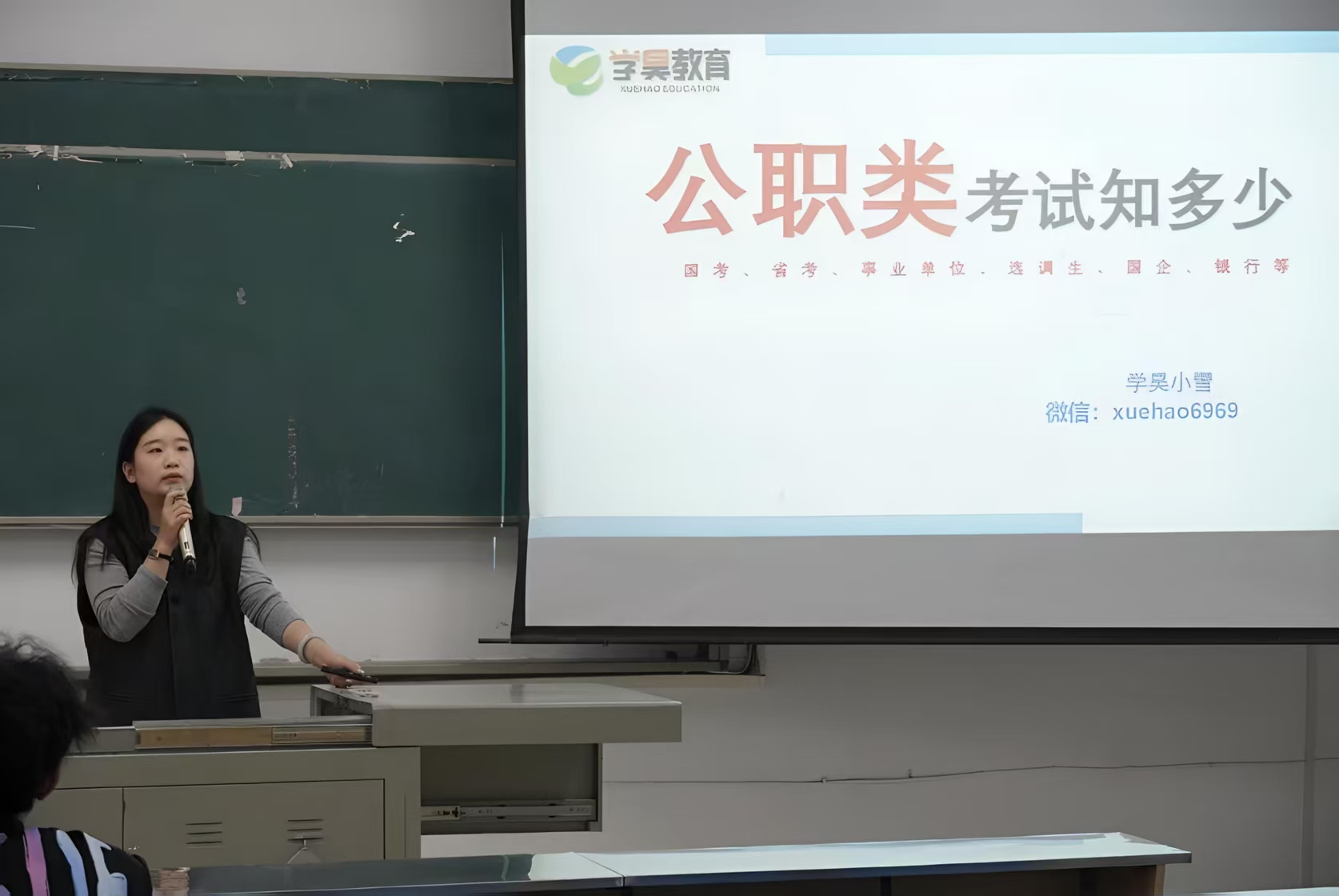 4月8日下午,公职类备考指导专题讲座在致用楼207教室顺利举办,2026届、2027届意愿报考公务员、事业单位等公职岗位的同学到场参与。