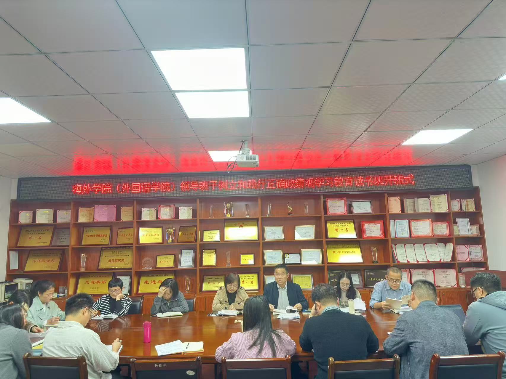 3月26 日下午,海外学院(外国语学院)在鸿文楼(二)C302会议室开展树立和践行正确政绩观学习教育读书班暨第一次集中学习。学院党政领导班子、师生党支部书记参加会议。