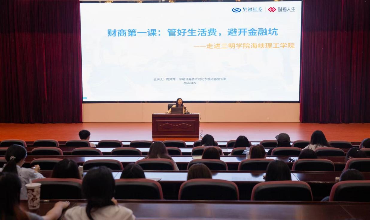 为落实访企拓岗成果,精准对接毕业生就业需求,4月22日下午,海峡理工学院邀请华福证券泉州分公司,在学校行政附楼学术报告厅举办专场招聘宣讲会,活动面向财务管理、市场营销专业学生,来自海峡理工学院、经济与管理学院、海外学院(外国语学院)等三个学院近400名学生到场参会。