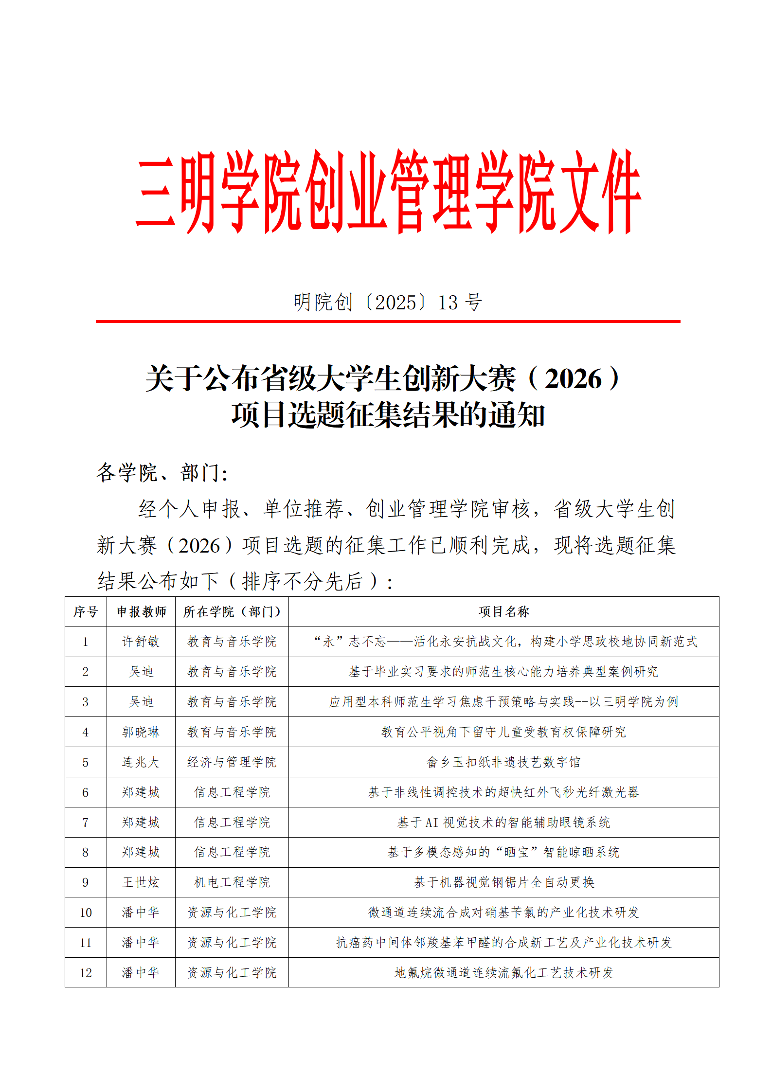附件3:关于公布省级大学生创新大赛(2026)项目选题征集结果的通知