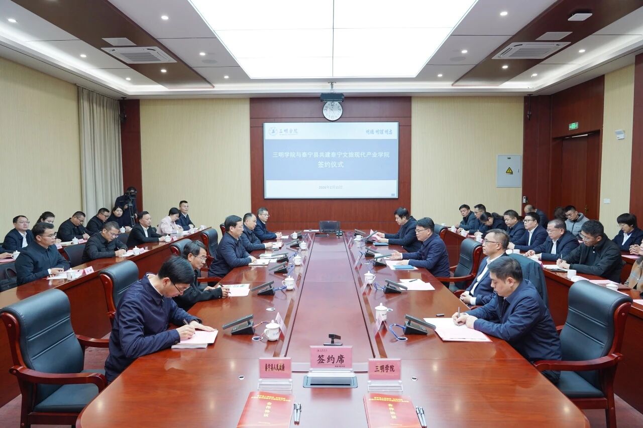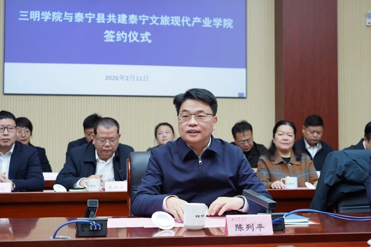 校党委书记陈列平表示,泰宁山川秀美、人文荟萃,红色文化深厚、文旅资源丰富,发展前景广阔;三明学院扎根地方、致力应用,始终以服务地方发展为己任。共建泰宁文旅现代产业学院,是双方立足实际、面向未来的战略选择,标志着合作从框架协议走向实体构建、从分散对接走向系统共建。学校将以此次签约为契机,紧扣产业需求培育高素质文旅人才,共筑人才培养新平台;依托科研资源助力泰宁文旅提质升级,共拓产业赋能新路径;全力支持产业学院建设,共建校地融合新机制,确保合作项目落地见效、早结硕果。
