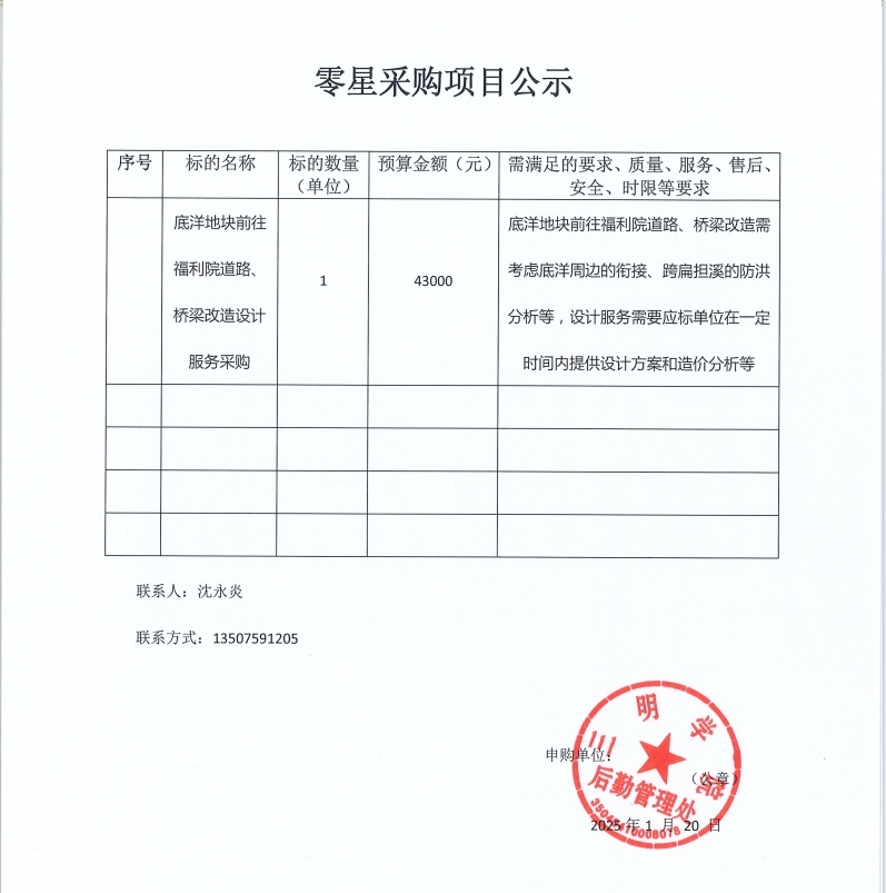 底洋地块前往福利院道路、桥梁改造设计服务采购项目公示