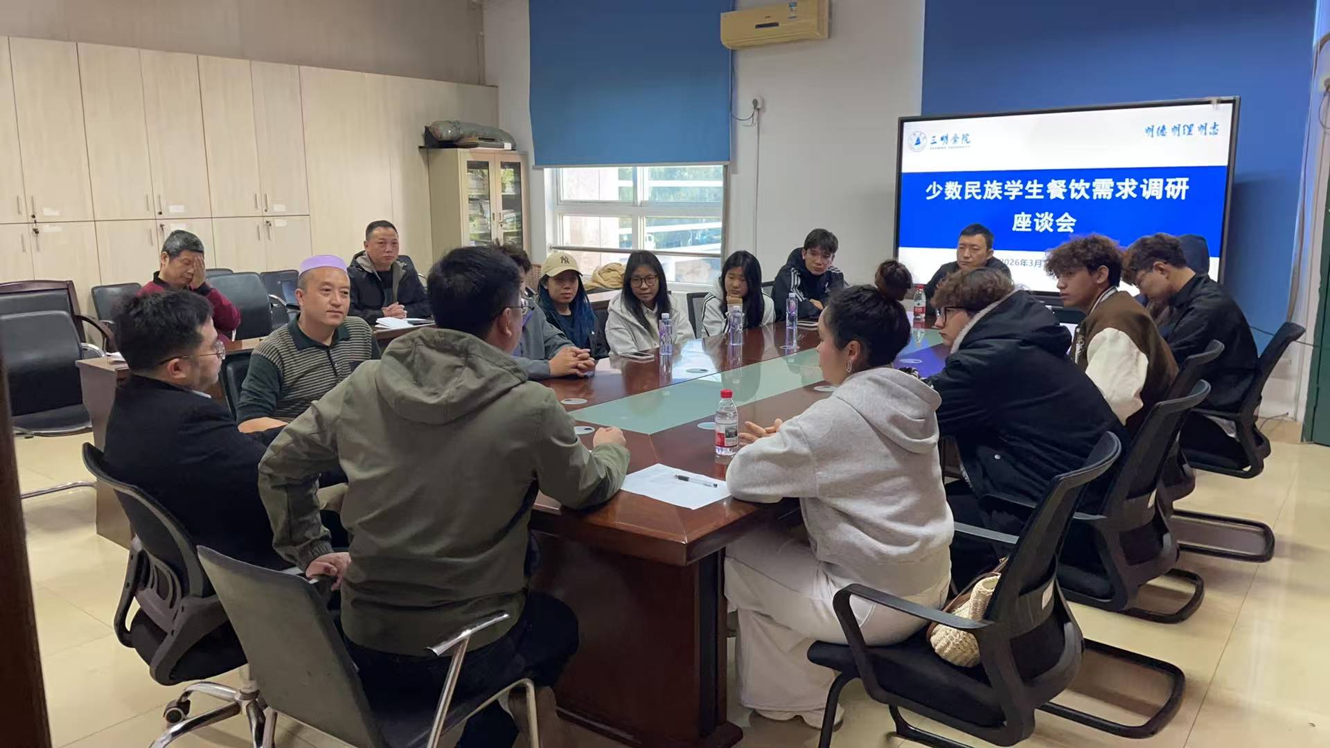 为进一步优化校园餐饮服务,精准对接少数民族学生饮食需求,搭建职能部门与学生面对面沟通桥梁,3月13日上午,学校在后勤管理处会议室召开了少数民族学生餐饮需求调研座谈会。后勤管理处相关负责人、党政办督查科、少数民族学生管理员、食堂民族风味档口负责人及少数民族学生代表参加了会议。