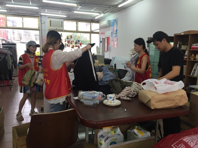 下午四点,志愿者们于台中市岭东科技大学进行了旧衣捐赠,经号召,不少人捐赠出了闲置衣物,志愿者们对衣物进行了整理分类,在大家的共同努力之下,共接收近百件衣物,由志愿服务队出面捐赠华山基金会。