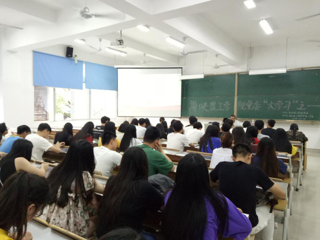 2018年6月21日下午15时30分,我院在厚德楼103教室开展“大学习”专题学习之一。参加此次会议的有海峡理工学院全体教职工党员、在校学生党员和入党积极分子。