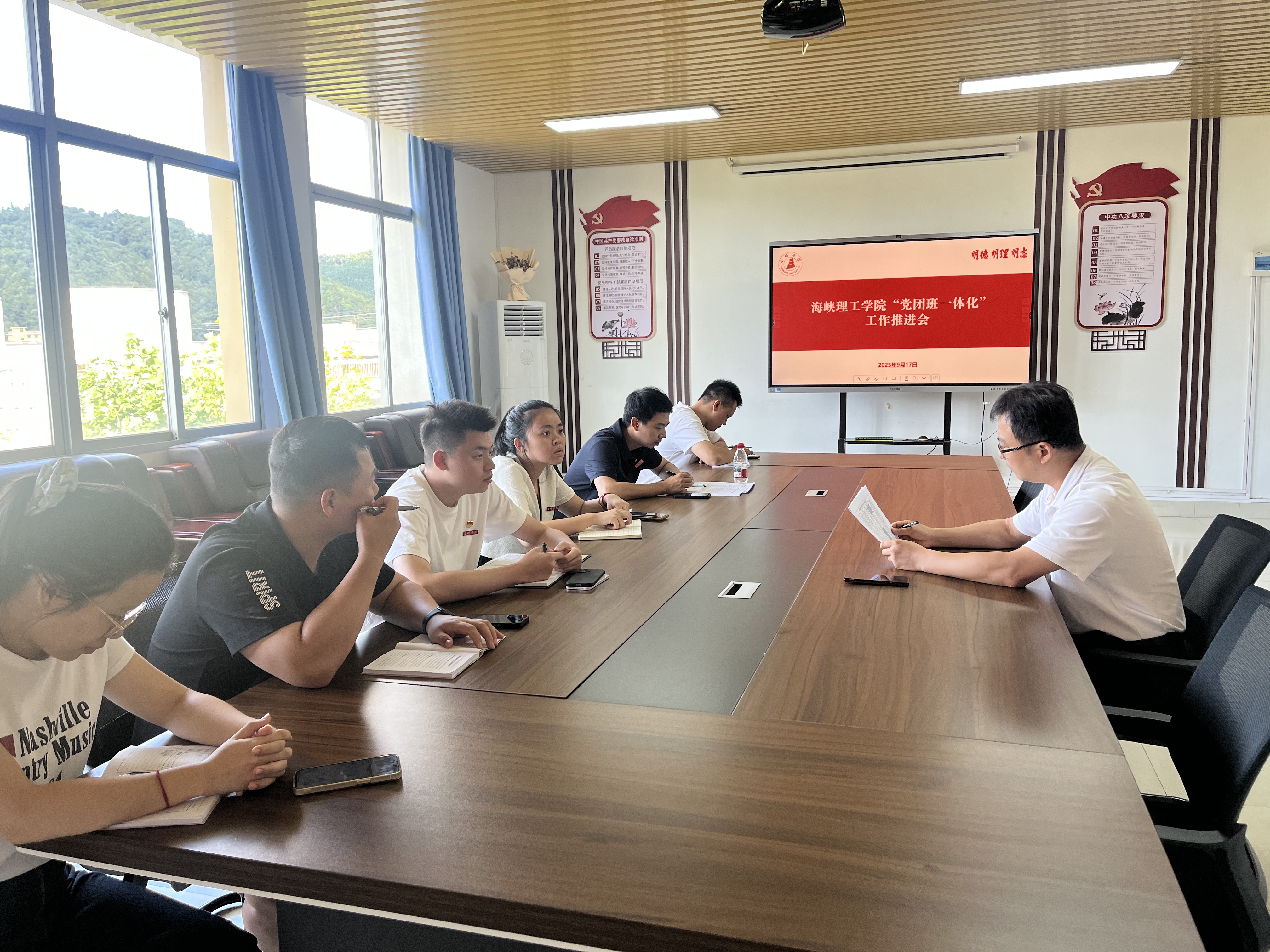 为扎实推进党团班一体化工作,推动党团班组织在学生思想政治教育中发挥积极作用,9月17日下午,海峡理学院在致用楼410会议室召开党团班一体化工作推进会,学院党委副书记陈勇、组织员、党支部书记、辅导员参加会议。