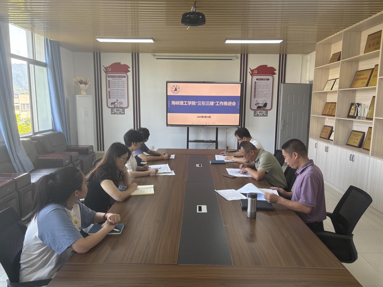 2025年9月16日上午,海峡理工学院在致用楼401院会议室召开“三引三提”中期工作推进会。学院领导班子成员及各科室负责人出席会议。
