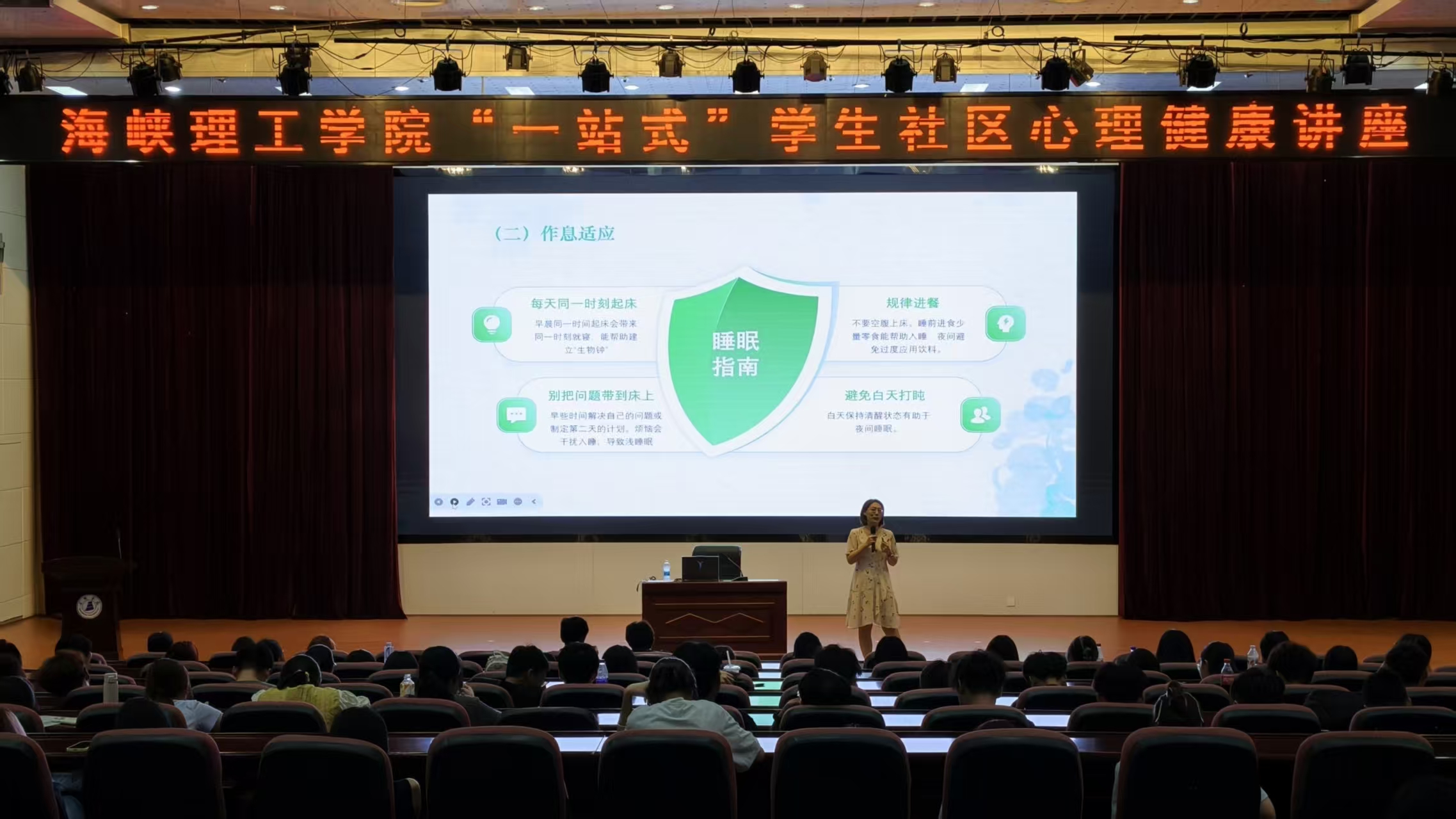 为进一步加强新生心理健康教育,帮助2025级学生快速适应大学生活,提升心理调适能力,营造积极健康的校园氛围,9月26日晚,海峡理工学院在行政楼附楼学术报告厅举办“‘心’起点,‘心’适应”为主题“一站式”学术社区心理健康讲座,本次讲座特邀校心理健康教育中心陈燕老师担任主讲,学院2025级全体新生到场聆听讲座。