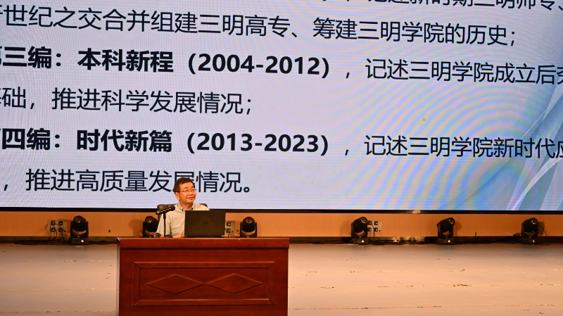 为加强新生思想引领,深化爱国主义与校史校情教育,海峡理工学院于9月15日在艺术楼音乐厅开展海峡成长论坛。特邀三明学院关工委宋孝金研究员作题为“闽师精神 历久弥新——兼谈抗战精神对教育强国的启示”的报告。全体辅导员、2025级全体新生到场聆听。