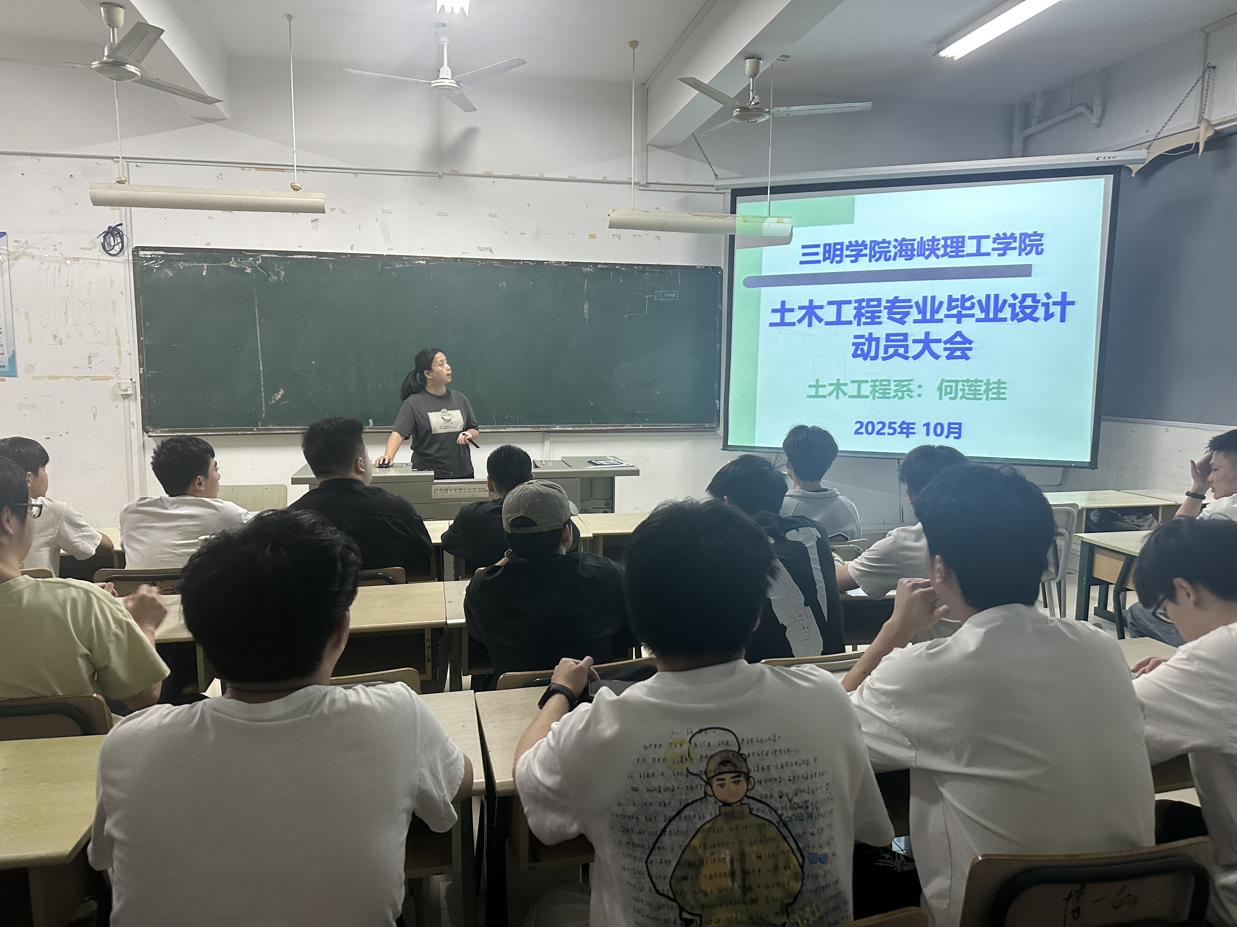 2025年10月20日上午,土木工程(闽台)专业在博学楼212教室召开了2026届毕业设计(论文)动员会。土木工程(闽台)专业2026届全体毕业生参加本次动员会,会议由建筑工程学院土木工程系副主任何莲桂主持。