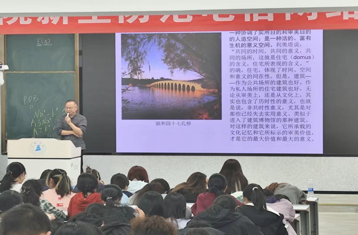 活动前期,我们通过多渠道广泛宣传,详细介绍讲座主题、主讲老师背景及活动价值,引发了同学们的热烈关注与积极响应。讲座中,主讲老师以深厚的专业功底和生动的表达,从审美基础概念切入,循序渐进地讲解了审美的本质、审美标准的多元性等核心内容。他结合中外经典艺术作品——从古典绘画的意境之美到现代设计的简约之美,从文学作品的文字之美到日常生活的场景之美,通过图文展示、视频播放等形式,直观呈现了审美艺术的丰富形态与独特魅力。同时,主讲老师还分享了如何在日常生活中发现美、培养审美能力的实用方法,强调审美不仅是艺术领域的专属,更是提升生活品质、促进个人成长的重要力量,引发了同学们的强烈共鸣。