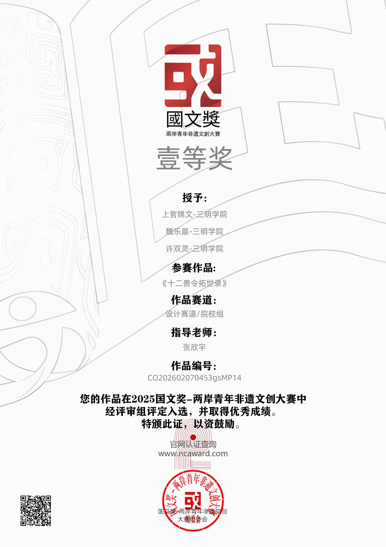 我院动画专业上官锦文、魏乐晨、许双灵三名学生,在张欣宇老师的精准指导下,凭借作品《十二兽令拓世录》脱颖而出,一举夺得院校组设计赛道一等奖!