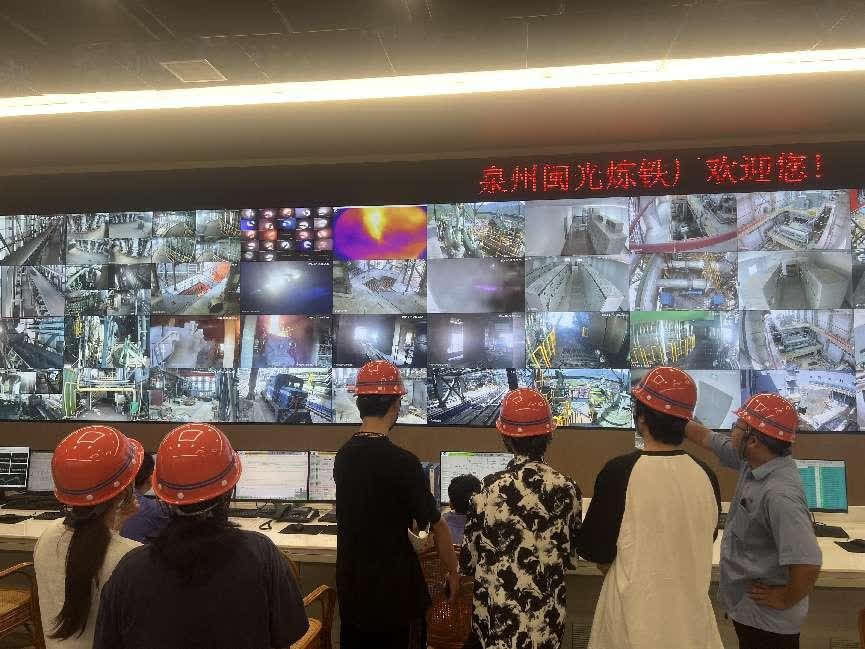 探索钢铁奥秘,感悟工匠精神。实践队来到泉州闽光钢铁有限责任公司,在企业党群活动服务中心讲解员的细致阐述下,实践队深入了解了泉州闽光的发展轨迹、企业架构、产品情况和生产流程,多角度、多方位地认识了泉州闽光肩负的历史使命,深入了解到泉州闽光由年产值数千万元的民营小铁厂成长为年产钢300万吨的长流程钢铁企业的发展历程。