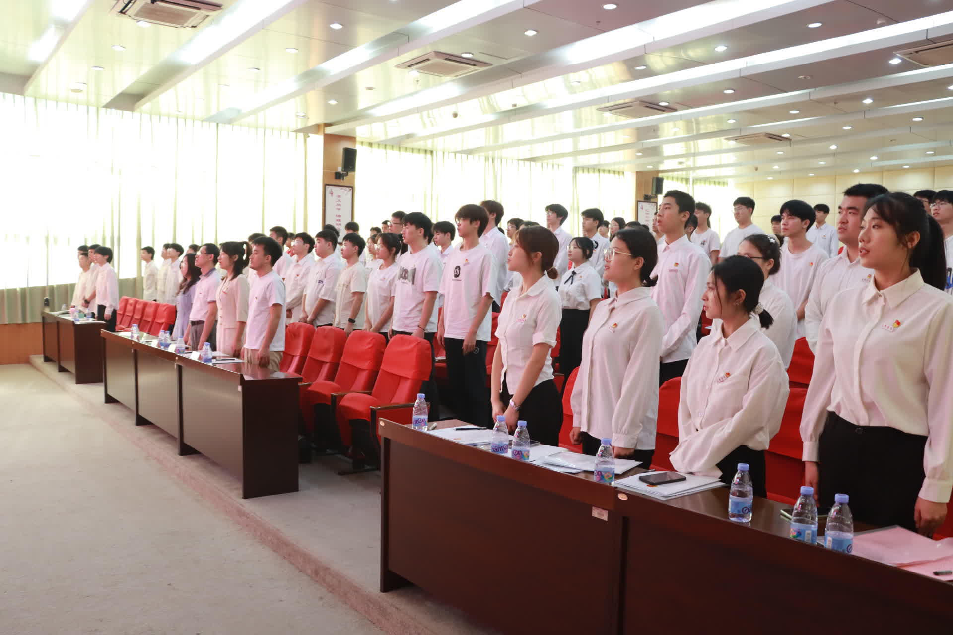 吴婉婧同志宣读了院团委关于同意召开团代会的批复。大会在雄壮的国歌声中拉开帷幕。