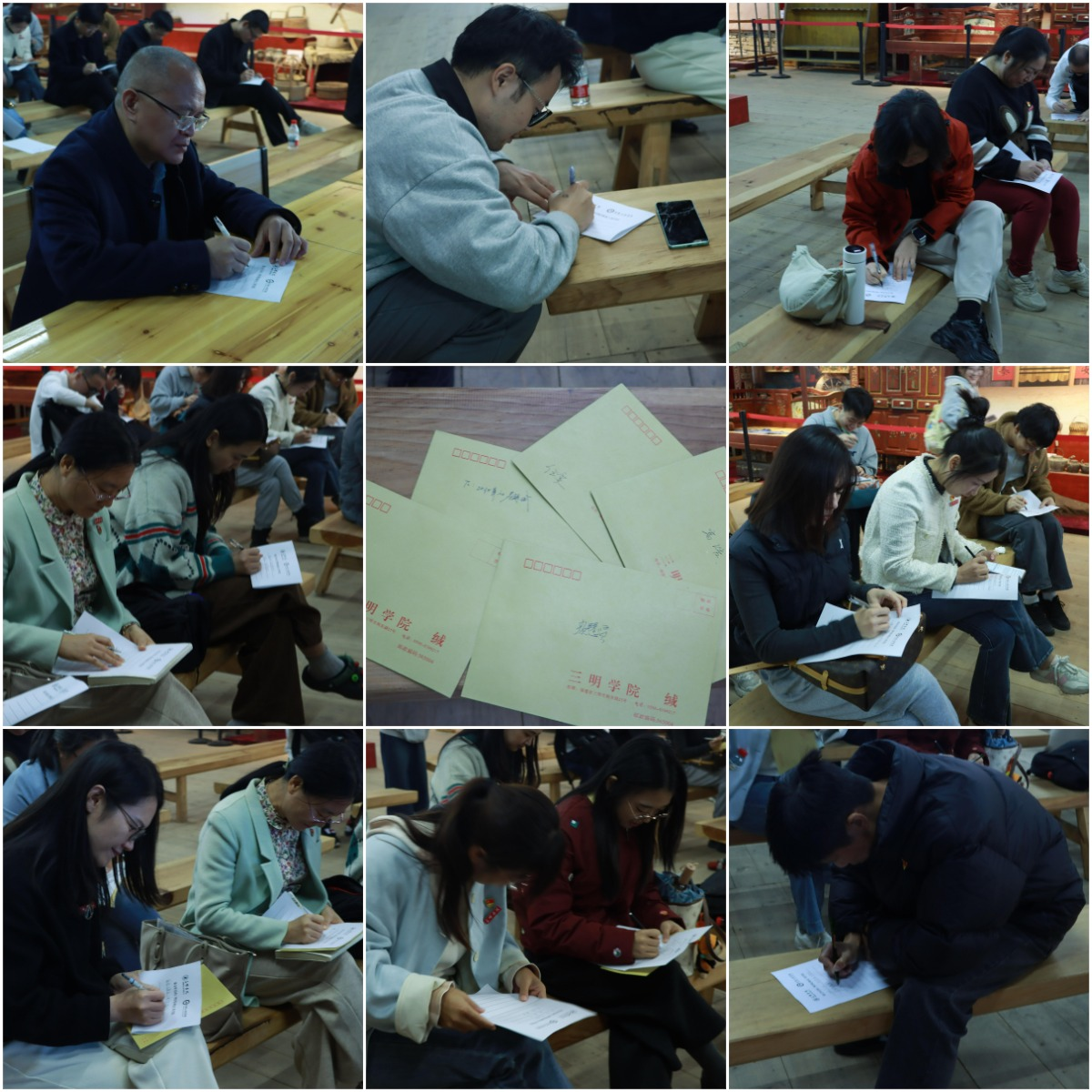 主题分享会上,教师党员代表结合日间所见所感,畅谈心得体会,分享育人经验,凝聚起干事创业的广泛共识。随后开展的“致五年后的学院”未来信笺活动别具深意。与会党员郑重写下对2030年的期许与承诺,封存于“未来邮箱”。这一封封信笺,不仅是个人初心的见证,更是一份跨越时空的行动督导,将从红色教育基地汲取的精神力量,转化为投身教育强国伟业的持久动力。