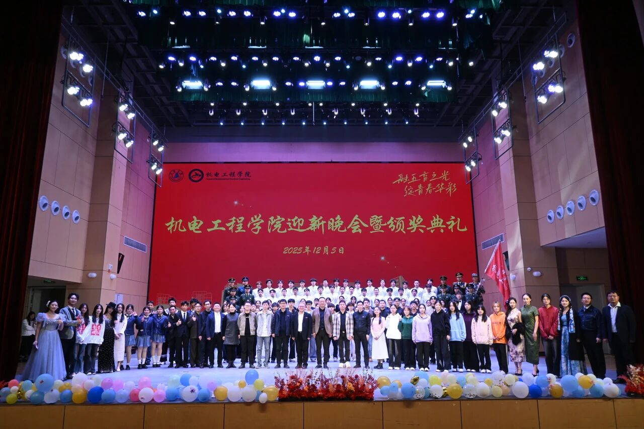 砥砺德行、学以致用。12月5日晚,机电工程学院在学校艺术楼音乐厅举办“融五育之光,绽青春华彩”迎新晚会暨颁奖典礼。院领导,各系、各科室负责人,教师代表及全体2025级新生欢聚一堂,共同渡过暖意满盈的夜晚。