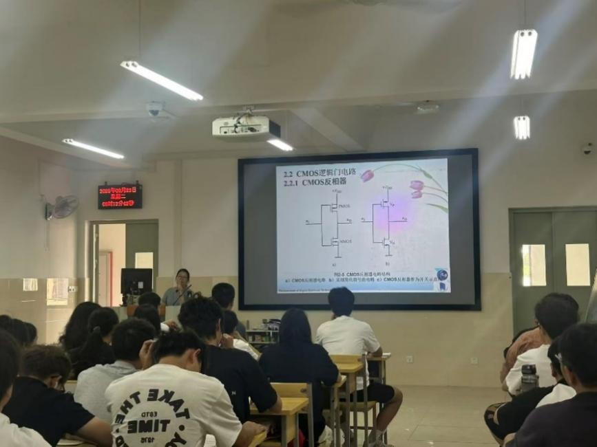 在课堂上,谢华老师对CMOS电路的理论部分进行了全面讲解,还通过模拟实验和仿真工具,展示了如何在不同应用场景下设计CMOS逻辑门电路。学生们通过实际操作,深刻理解了电路设计中的关键问题,如传输延迟、静态功耗和动态功耗等,并探讨了如何通过合理设计提高电路的效率与稳定性。有同学们表示,通过这堂课不仅对CMOS电路的设计有了更具体的认识,更认识到每一个技术参数的选择的重要性。