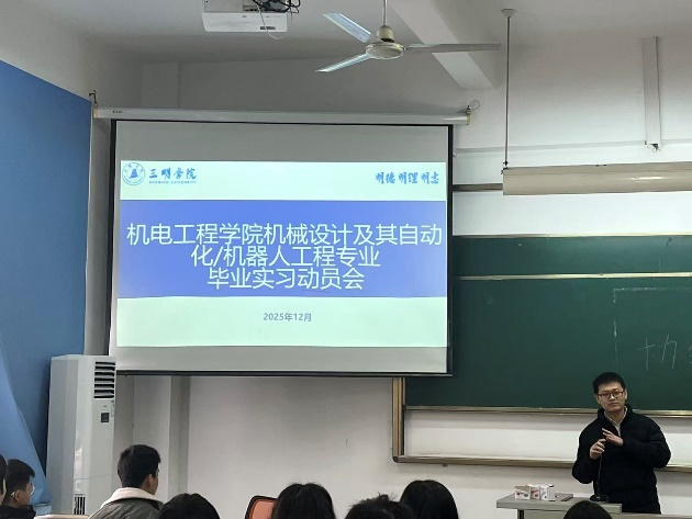 12月29日,机电工程学院机械工程系召开2026届毕业实习动员大会。全体实习指导教师,机械设计制造及其自动化、机器人工程等专业毕业生参加了活动。