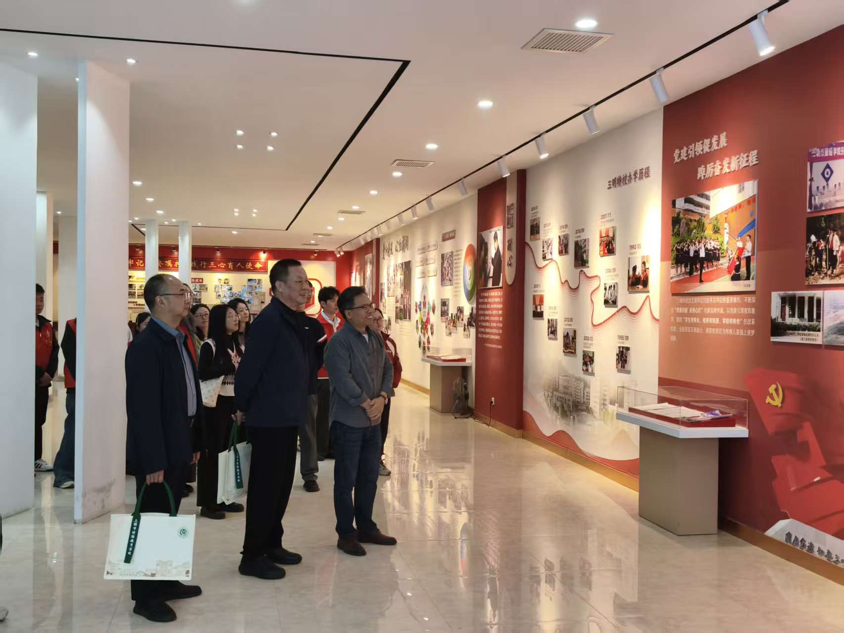 活动伊始,全体师生代表在特校相关负责人的带领下参观了校史馆,聆听“践行‘三心教育’、引领美好未来”故事,了解特校的发展历程与办学成果。