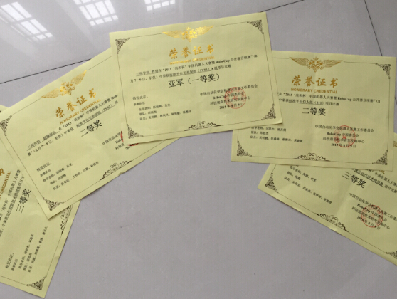 8月7日至9日,“2015''尚和杯''中国机器人大赛暨RoboCup公开赛分项赛”在东莞理工学院成功举办,此次大赛有来自全国160余所高校的580支队伍2100多学生参赛。我校首次参加本项赛事,共派出5支参赛队伍,经过激烈的竞争,我院“胜羽队”(指导老师:邱丽梅、吴龙;队员:吴明鹏、林秋凤、林明毅、蔡雅丝)摘得全国亚军(一等奖);“超越战队”(指导老师:邱丽梅、吴龙;队员:高育法、王怀阳、江霖、林俊杰)和“胜亚队”(指导老师:邱思杰、熊昌炯;队员:吴明鹏、何盛峰、蔡雅丝、黄建新)两支队伍获得了二等奖;“NO ZUO NO DIE队”(指导老师:闻霞、任雯;队员:吴有宏、刘易承、张梓坤、李源清)和“煎饼队”(指导老师:邱思杰、刘建军;队员:刘健、郑继隆、蔡振、廖长久)两支队伍获得了三等奖的优异成绩。 |